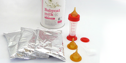Lo mejor para ellos son las fórmulas comerciales que podrás encontrar en el veterinario y que incluyen habitualmente biberón y tetinas en el kit. Los kits incluyen además las indicaciones necesarias para preparar la leche y administrársela al gatito, así como las cantidades aconsejadas.