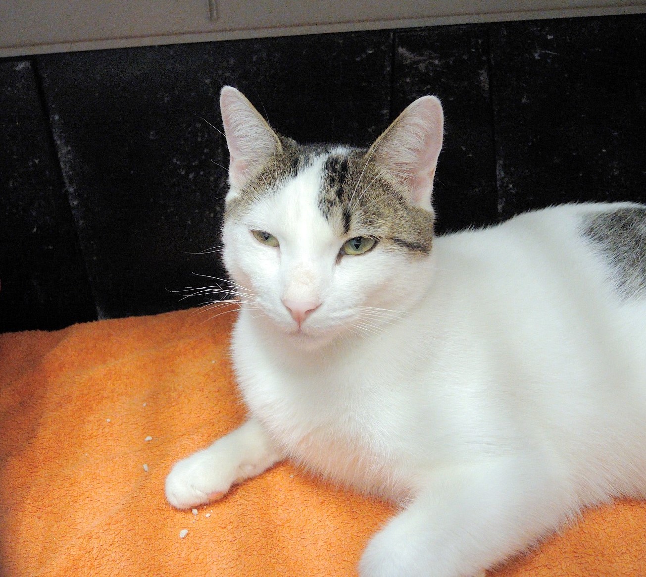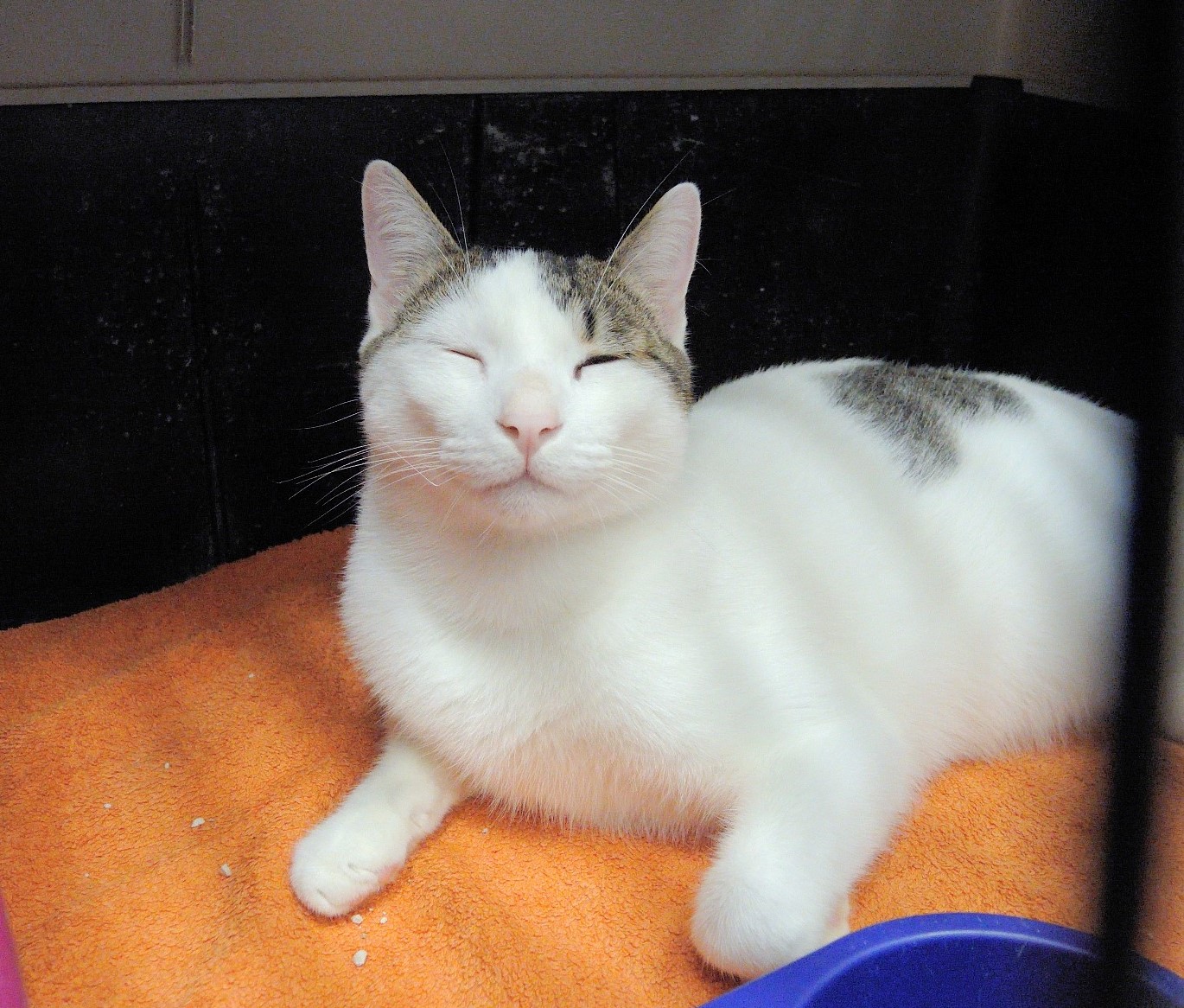 ADOLFO es otro de sus gatos que por su forma de actuar nos hace sospechar que es un gato casero. Es un gato tranquilo y como y descansa en su jaula sin estres como se aprecia en las fotos.