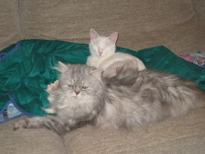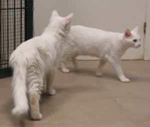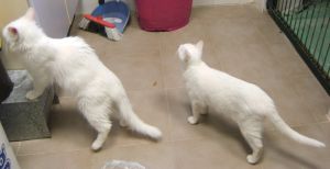 Son simpáticos, cariñosos y muy muy majetes…además de unas auténticas bellezas de pelo blanco (en el caso de Cairo semilargo) y unos ojazos azules profundísimos.
