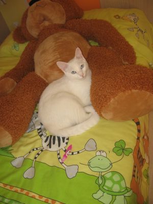 Ha hecho muy muy buenas migas con su compañera gatuna… duermen juntas, se lavan, una gozada cómo se atienden y miman entre ellas.