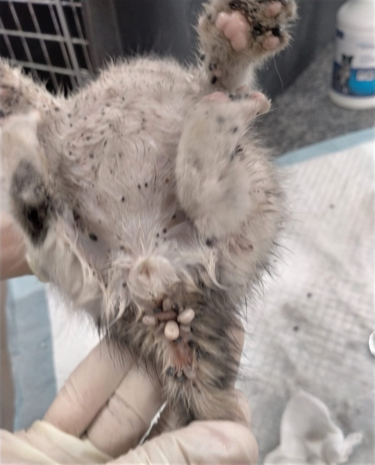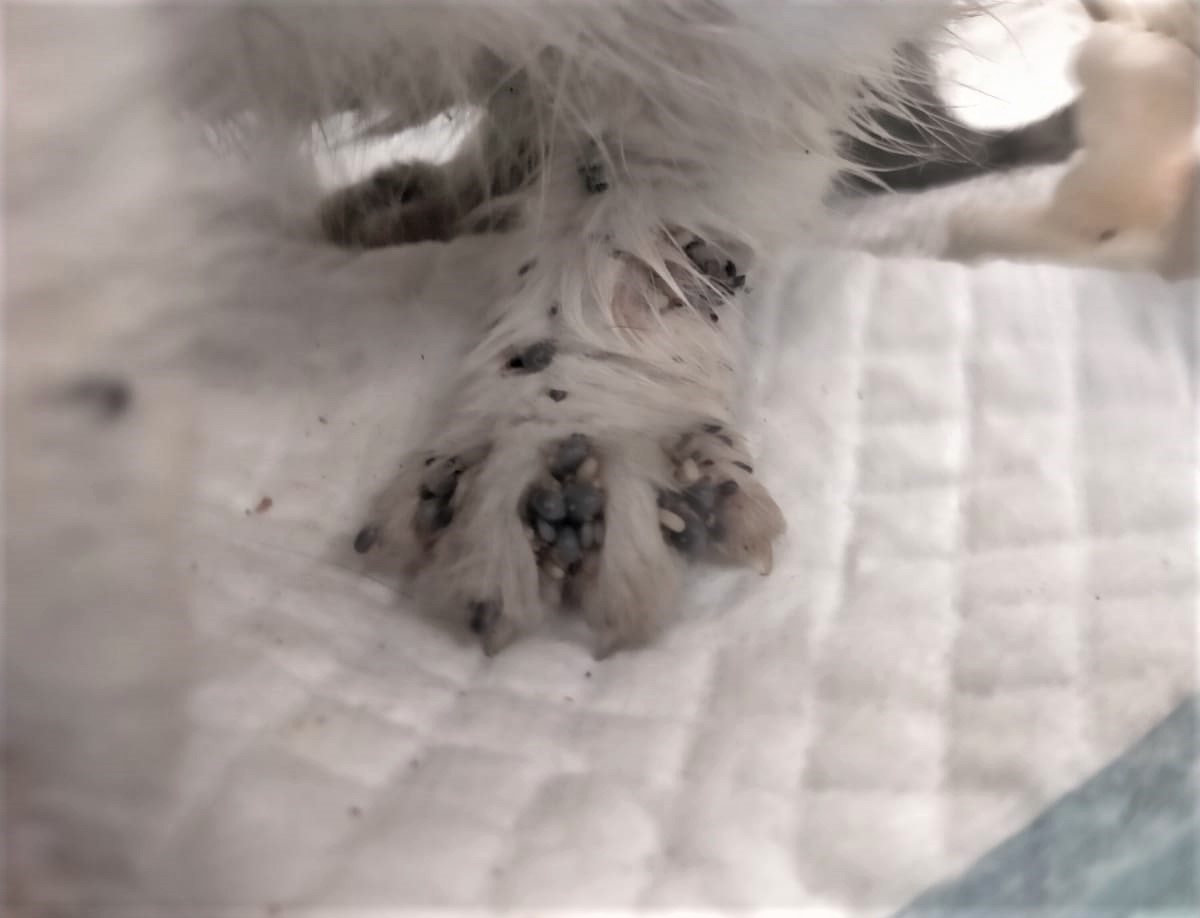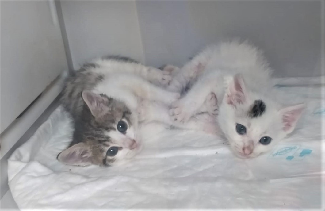 Estos dos enanos llegaron la semana pasada literalmente comidos por las garrapatas. Una vez llegamos a 300 garrapatas retiradas perdimos la cuenta pero seguía habiendo por todos los lados. En las fotos podéis ver en la zona de los dedos como se apiñaban las muy…Han estado varios días en la clínica porque la anemia que tenían era importante por culpa de la infestación de plagas que tenían. Actualmente están en tratamiento y van cogiendo fuerzas poquito a poco. Ambos están asustados y doloridos y de primeras bufan pero luego se dejan manipular muy bien. Alfa (el blanquito con una mancha en la cabeza) es mas sociable que Beta pero se compenetran tan bien que la adopción ha de ser conjunta. 🙂