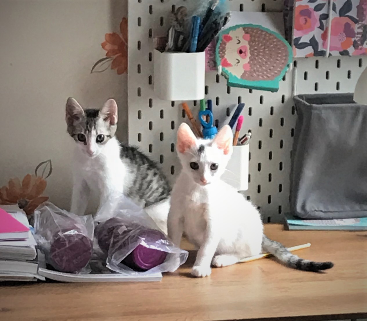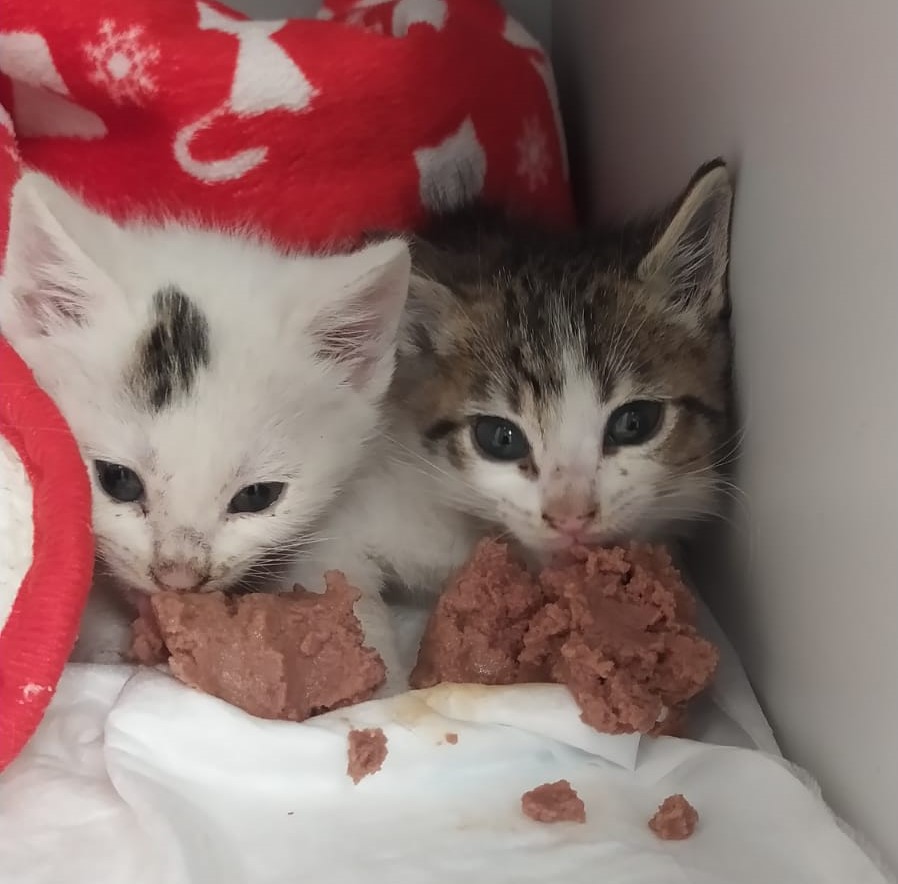 Alfa y Beta van creciendo y haciéndose cada vez más sociables. La casa de acogida nos cuenta que de salud están maravillosos los dos y llenos de energía. Son un torbellino corriendo de un lado a otro, persiguiéndose y jugando. Están en la edad curiosa y quieren verlo todo, tocarlo todo y morderlo todo. Alfa además es un tragón y roba pienso a quien sea, aunque en realidad es Beta el que está más grandote y ha empezado a dar el estirón.