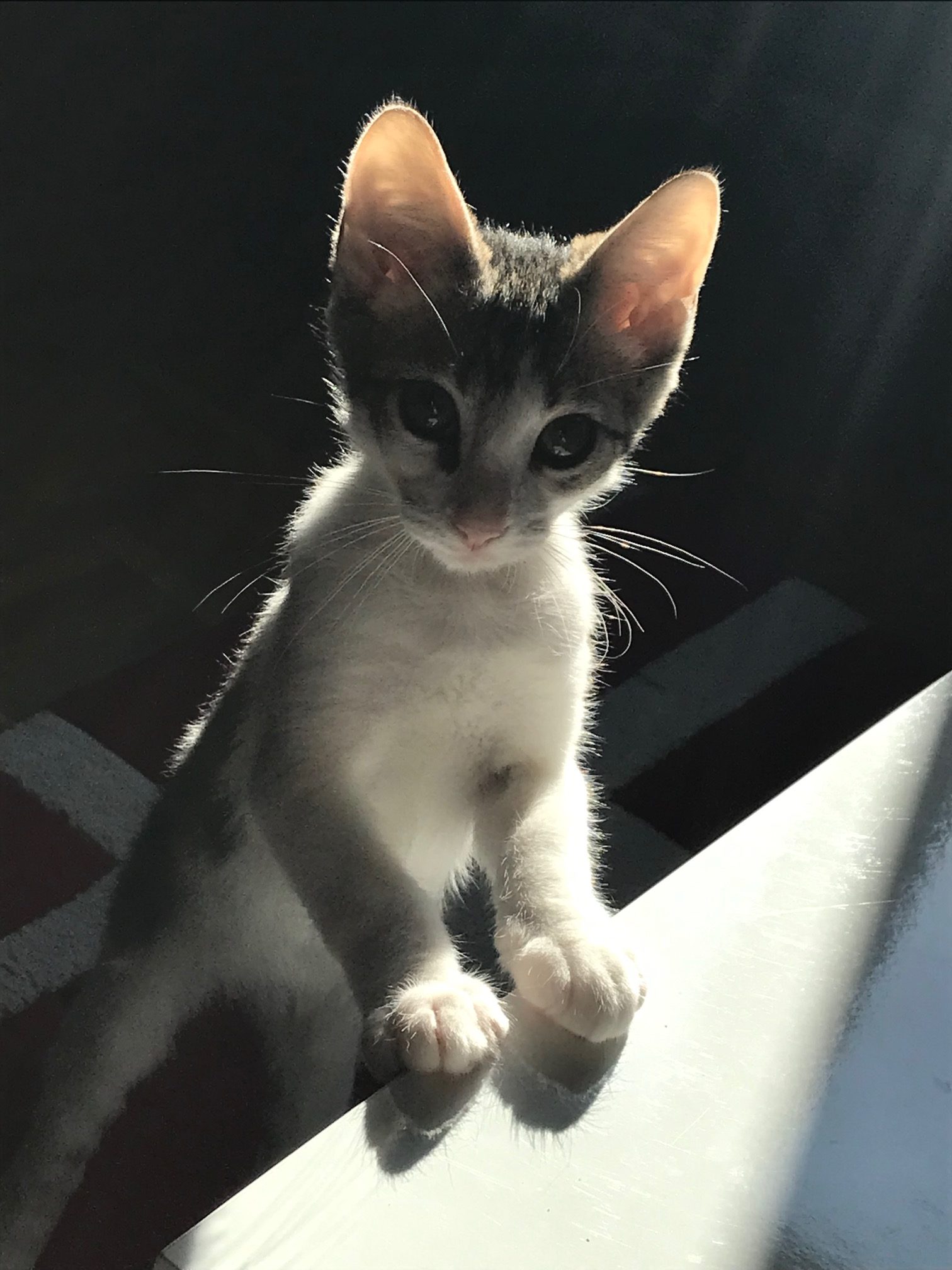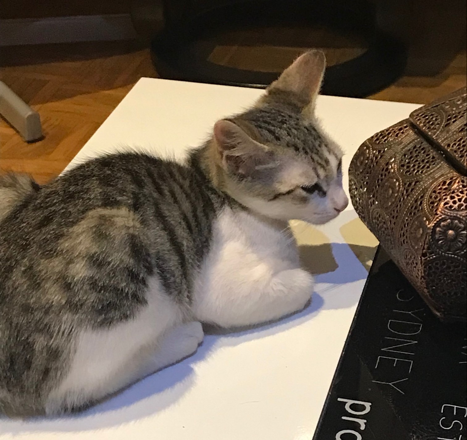 BETA por su parte es más independiente. Ya no bufa ni gruñe nunca, pero a veces sí sale un poco corriendo, depende de cómo tenga el día. Hay momentos en que quiere caricias y ronronea y otros en que, aunque te deja cogerlo sin problemas, lo que quiere es que le dejes correr en paz. Pero aunque no sea tan apegado, también viene siempre a la habitación en la que estamos, aunque mantenga más las distancias.