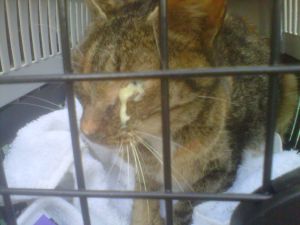 En principio dio calicivirus, herpesvirus y desnutrición… el ojo una vez limpiada toda la porquería que llevaba, no era lo que peor estaba, así que por ahí podemos estar tranquilos.