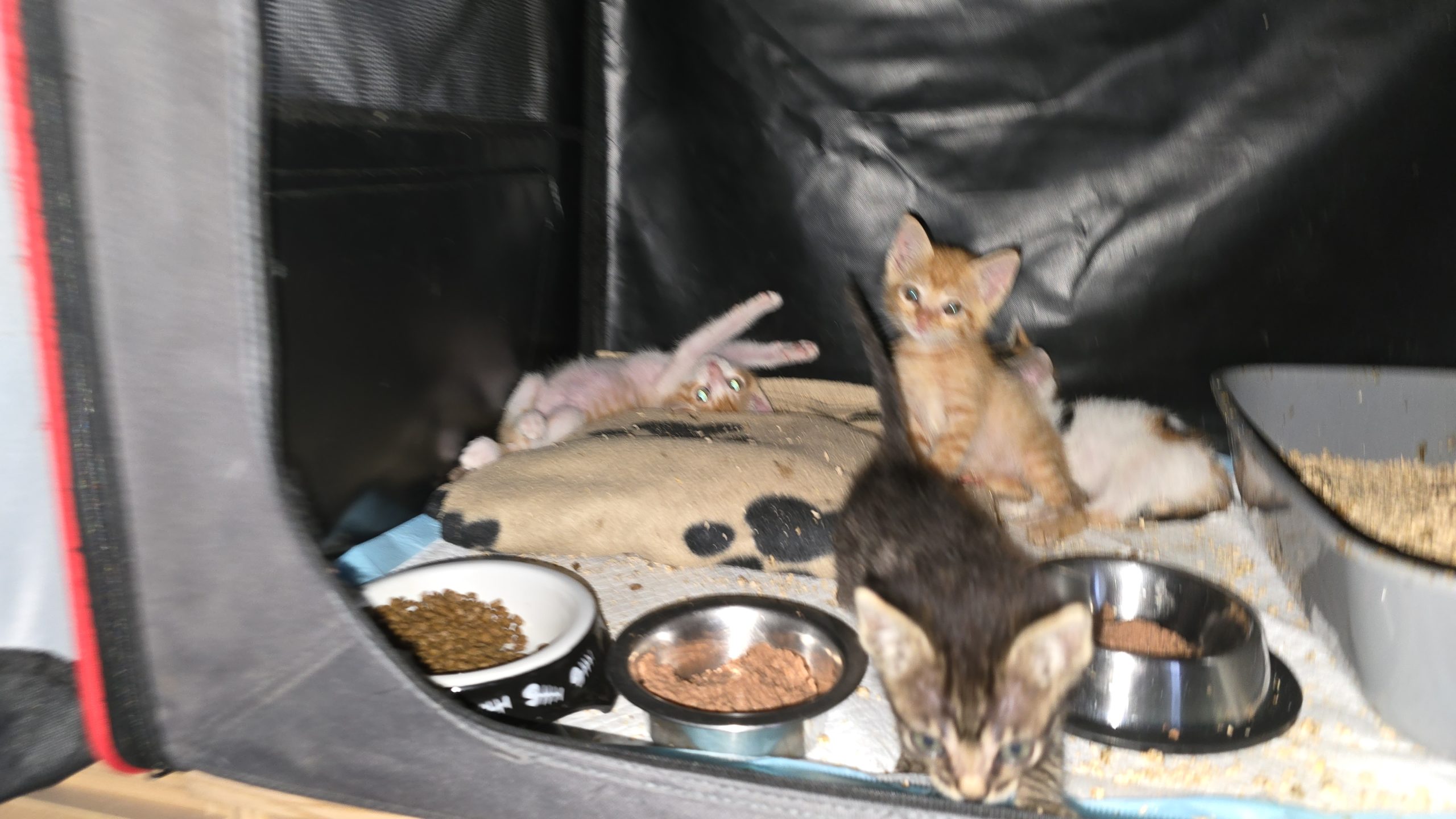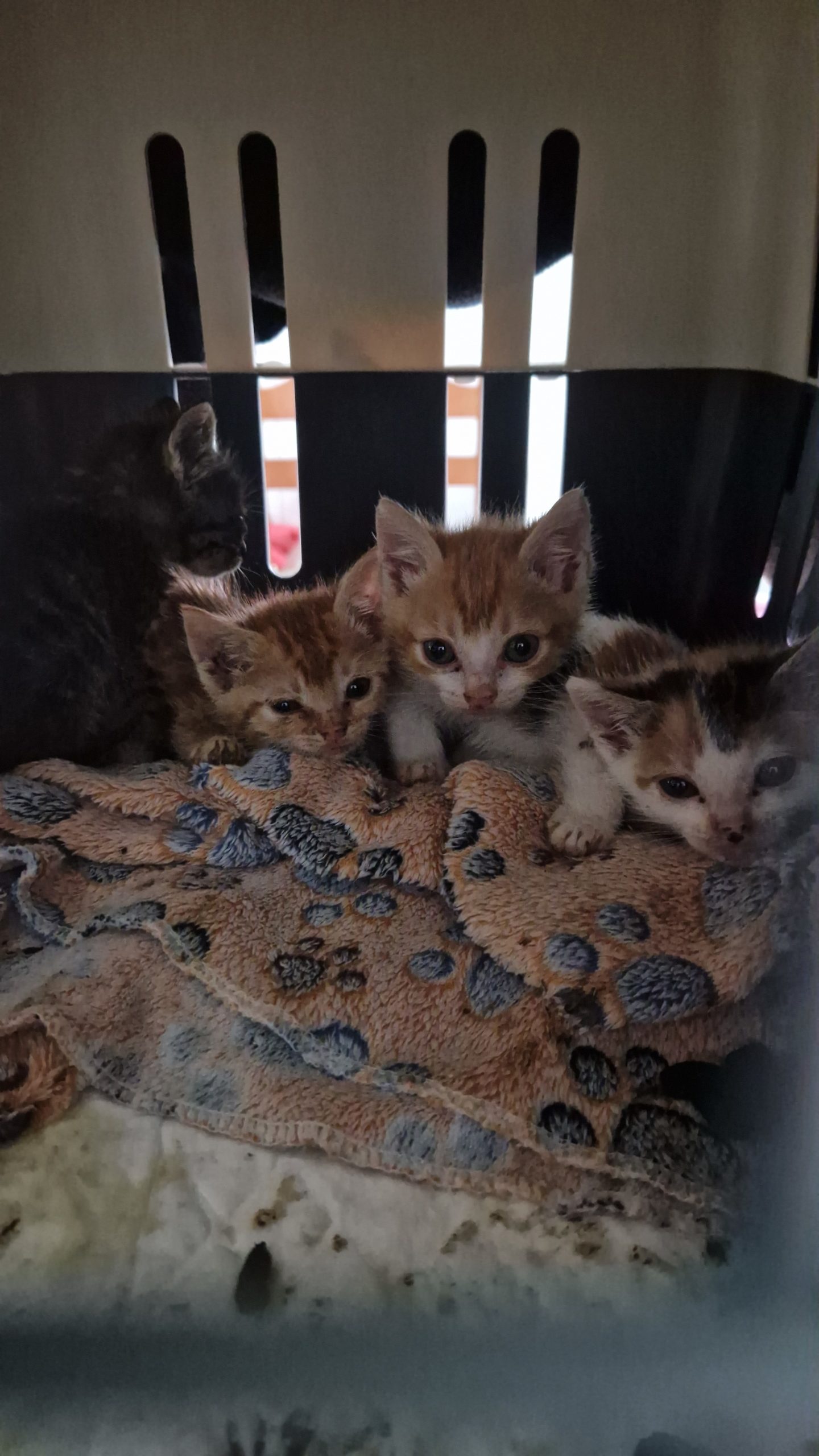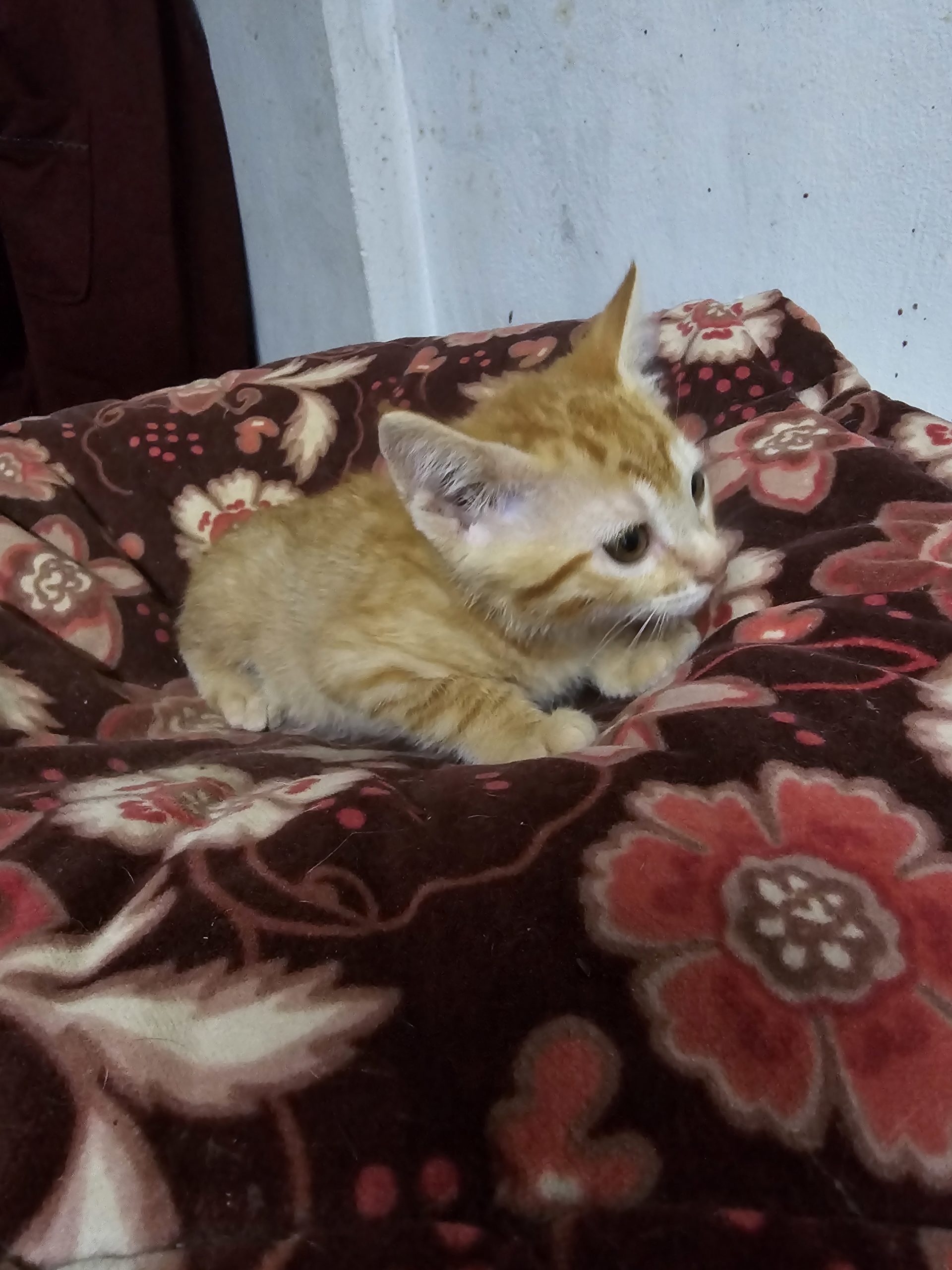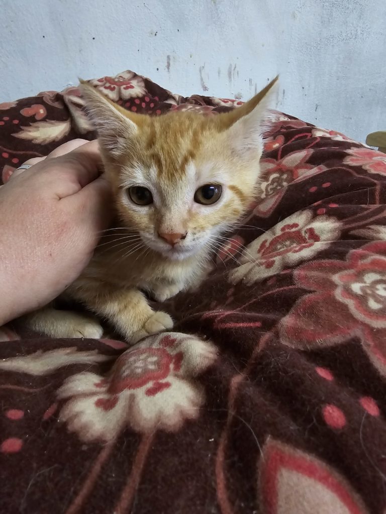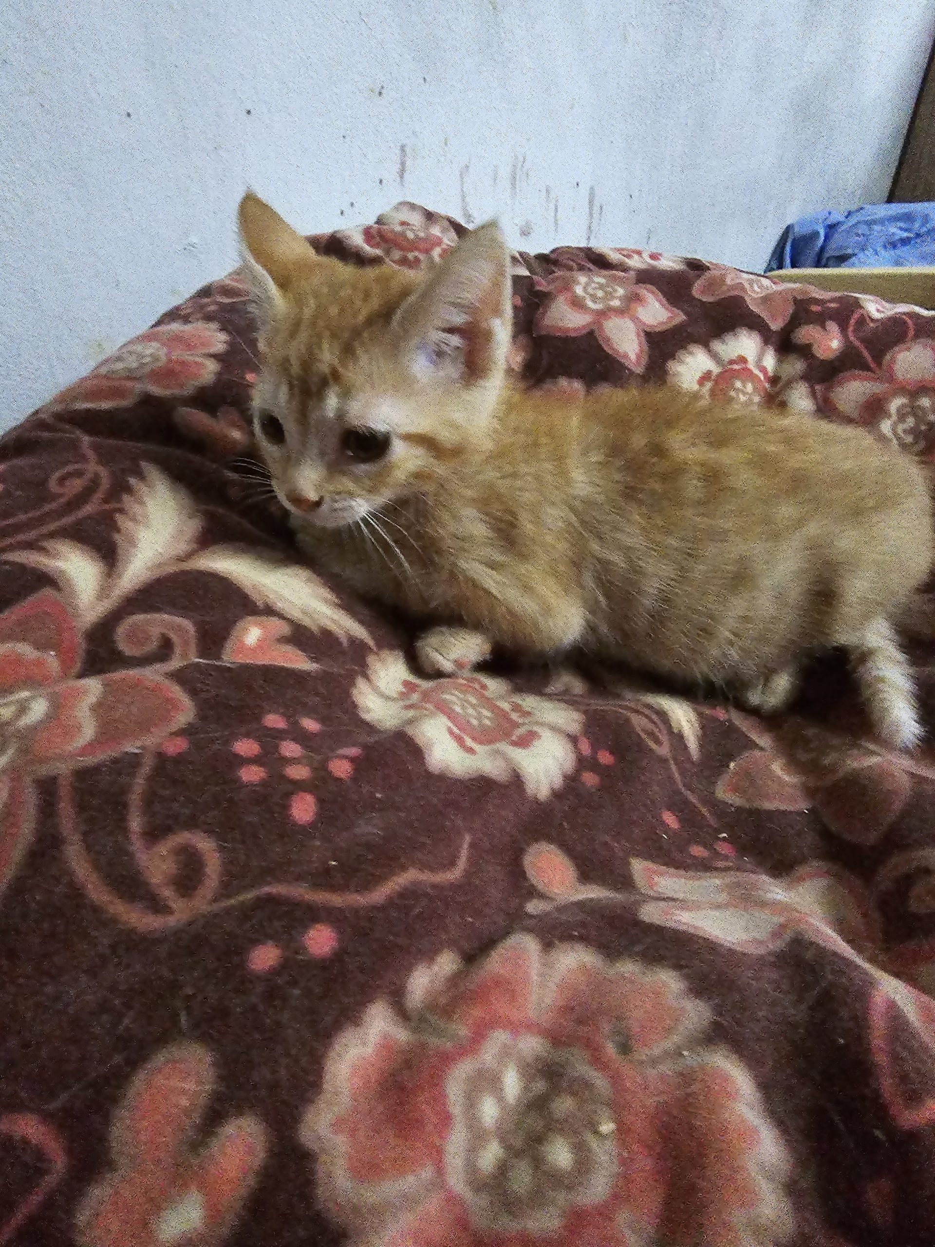 Ámbar es una gatita de color naranja, es la que parecía más espabilada cuando llegaron, juguetona y muy lista, tienen su primera desparasitación y la segunda les toca la primera semana de julio