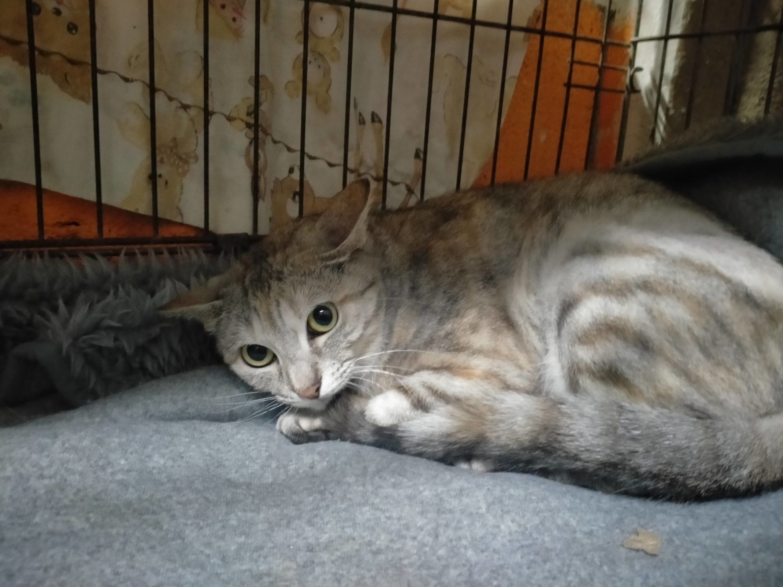 Amelia es una preciosa jovenzuela recogida de la calle. Aún tiene mucho miedo pero quiere confiar en nosotras y se deja acariciar sin problemas. Sus ojos son como para perderte en ellos.