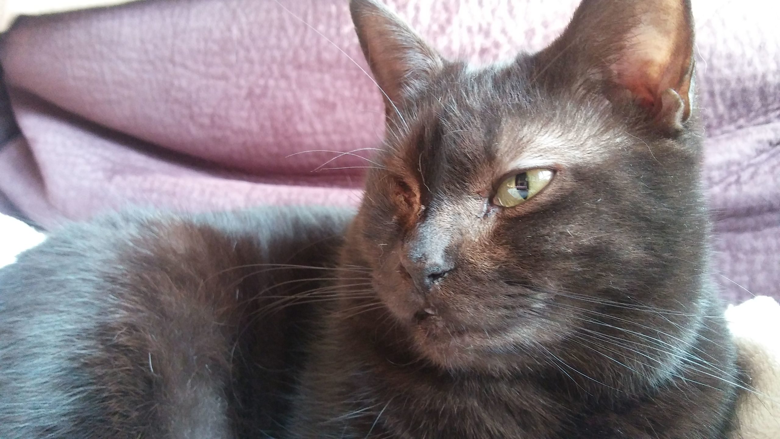 Paso un tiempo conviviendo en el refugio con otros gatos pero un compañero pudo hacerle en un hueco en su casa. Cuando le dijimos que nos enviara algo sobre su carácter nos dijo: