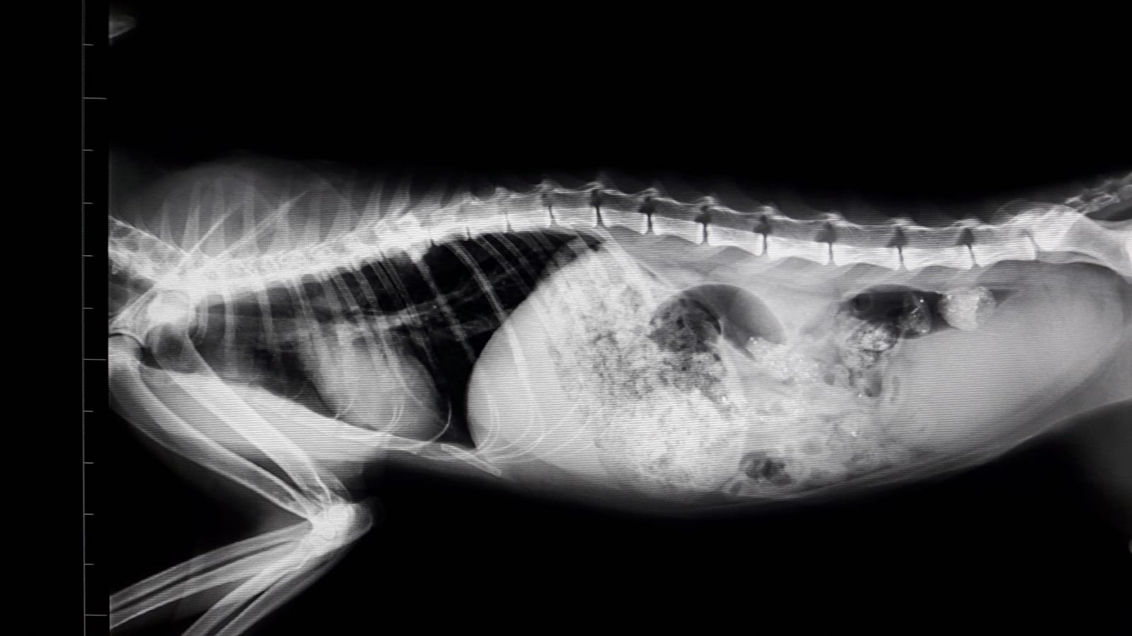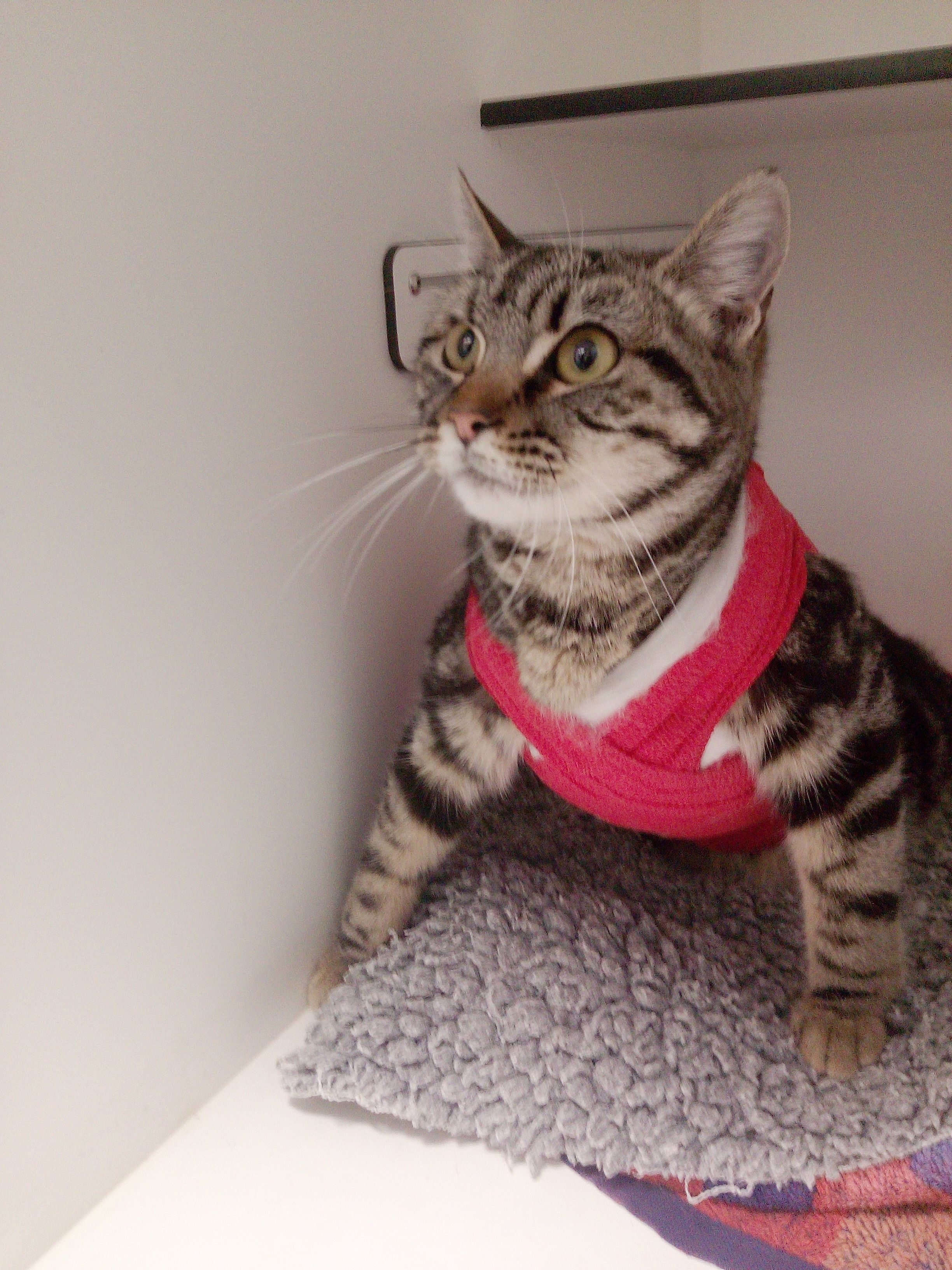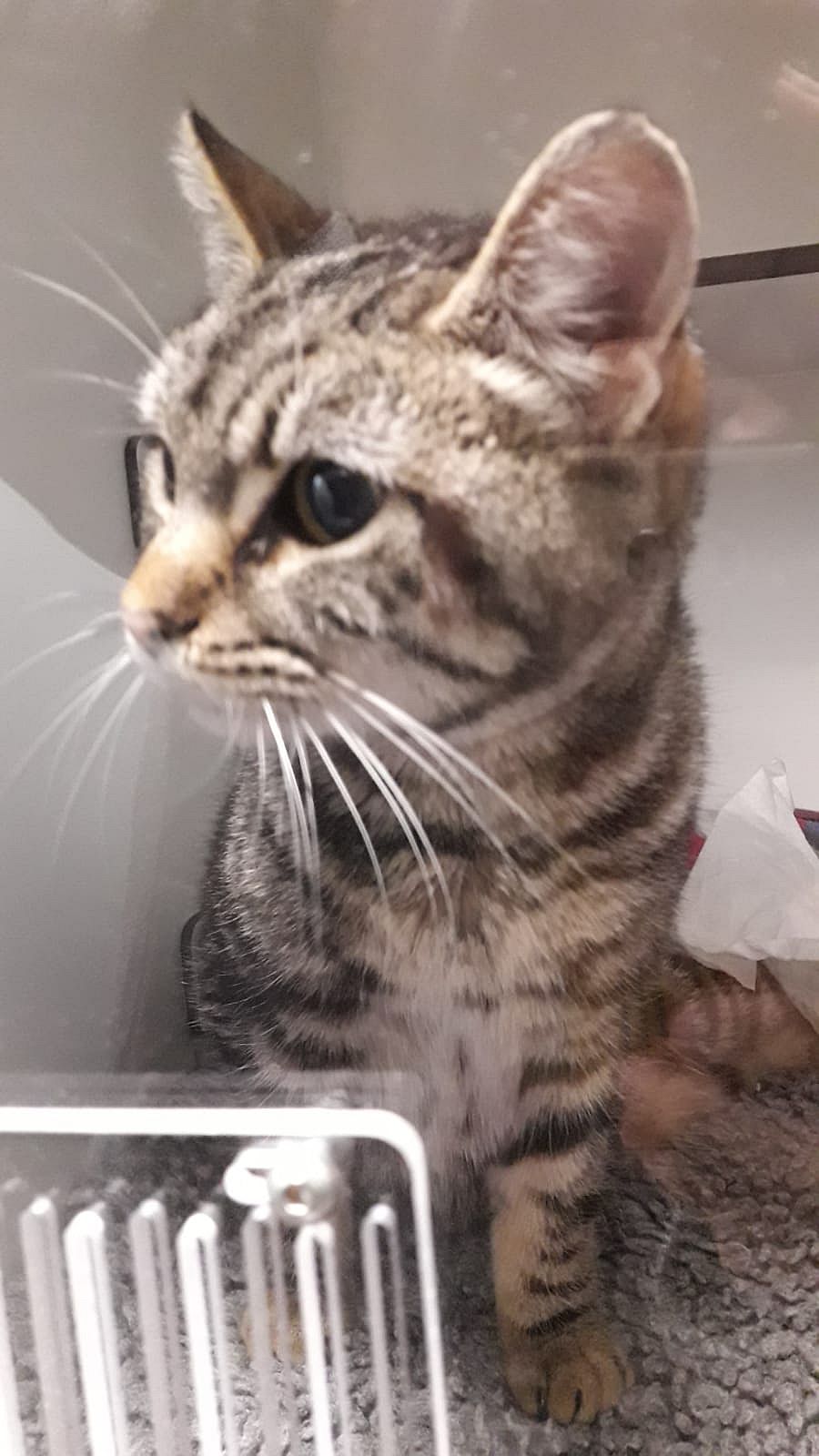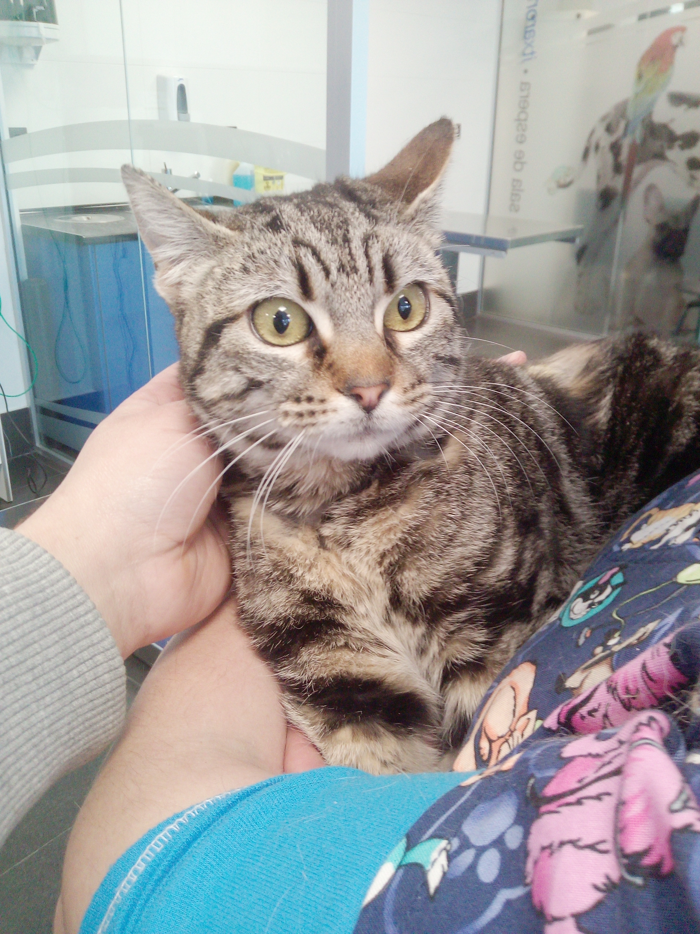 La madrugada del 3 de febrero recibíamos una llamada del servicio de recogida. Había una gata que parecía no mover los patas traseras. La derivamos a clínica donde le hicieron las pruebas necesarias, y tal y como se muestra en las radiografías, tiene una vertebra fracturada. La buena noticia es que tiene sensibilidad en ambas patas, y, aunque por el momento está paralítica, es probable que con cirugía mejore. De momento tiene que estar en reposo absoluto con el vendaje que le han puesto. Ademas, está pendiente de un TAC para poder ver el alcance de la lesión.