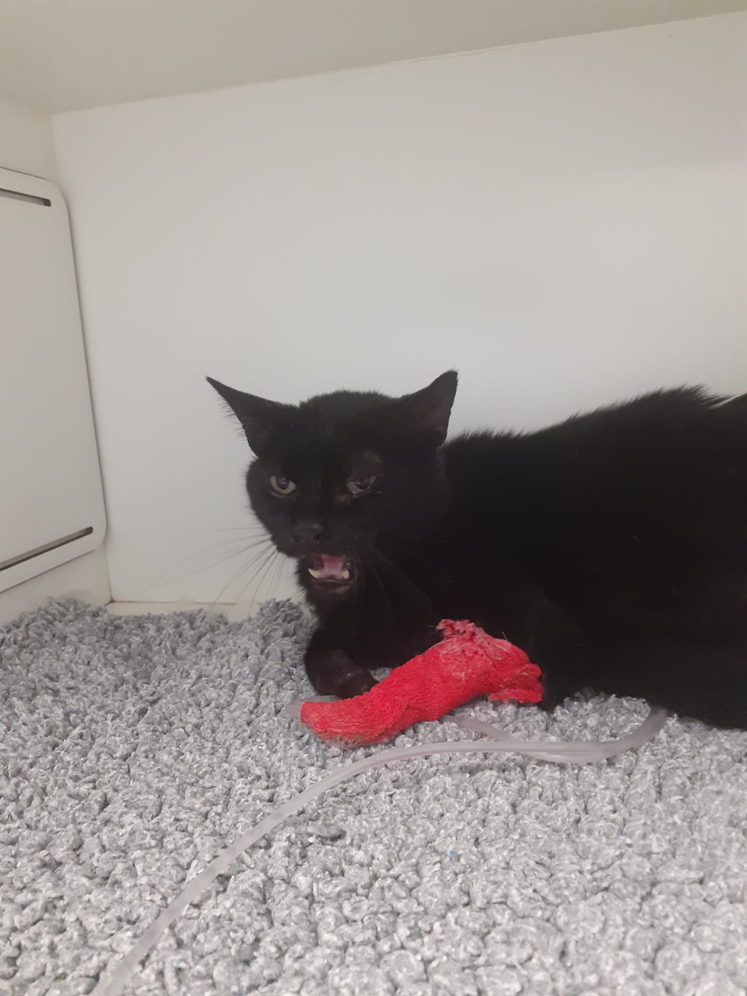 El no se muestra agresivo, solo receloso, así que creemos que en cuanto se sienta protegido y atendido…comenzará a confiar y ser un gato bueno y adorable, pero para eso necesita que alguien se enamore de él y le de una oportunidad…ANIMAOS!!