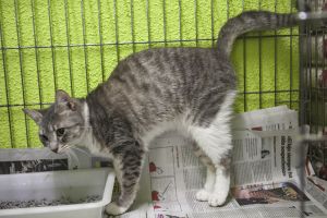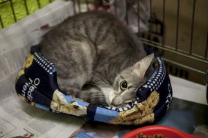 Es muy buenecita y cariñosa además de tranquila… encima acostumbrada a otros gatos y perros, siempre ha vivido en piso acompañada… y ahora desgraciadamente se ve en una jaula.