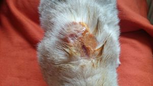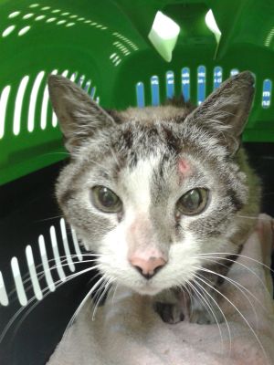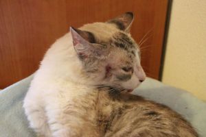 Nuestro pobre Argos no ha terminado de encajar donde estaba acogido y entre su alergia, el estres, que otros gatos le pegaban…ha terminado con alguna herida importante que necesita tratamiento