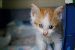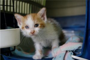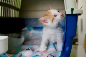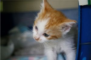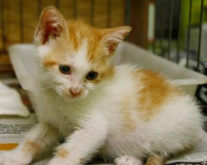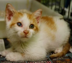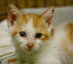 La pequeña Arlette es una gatita que ha llegado con un ojito mal, todo velado y se la esta tratando, más tarde se la irá al especialista para que valore, es muy cariñosa y le encanta estar en brazos.
