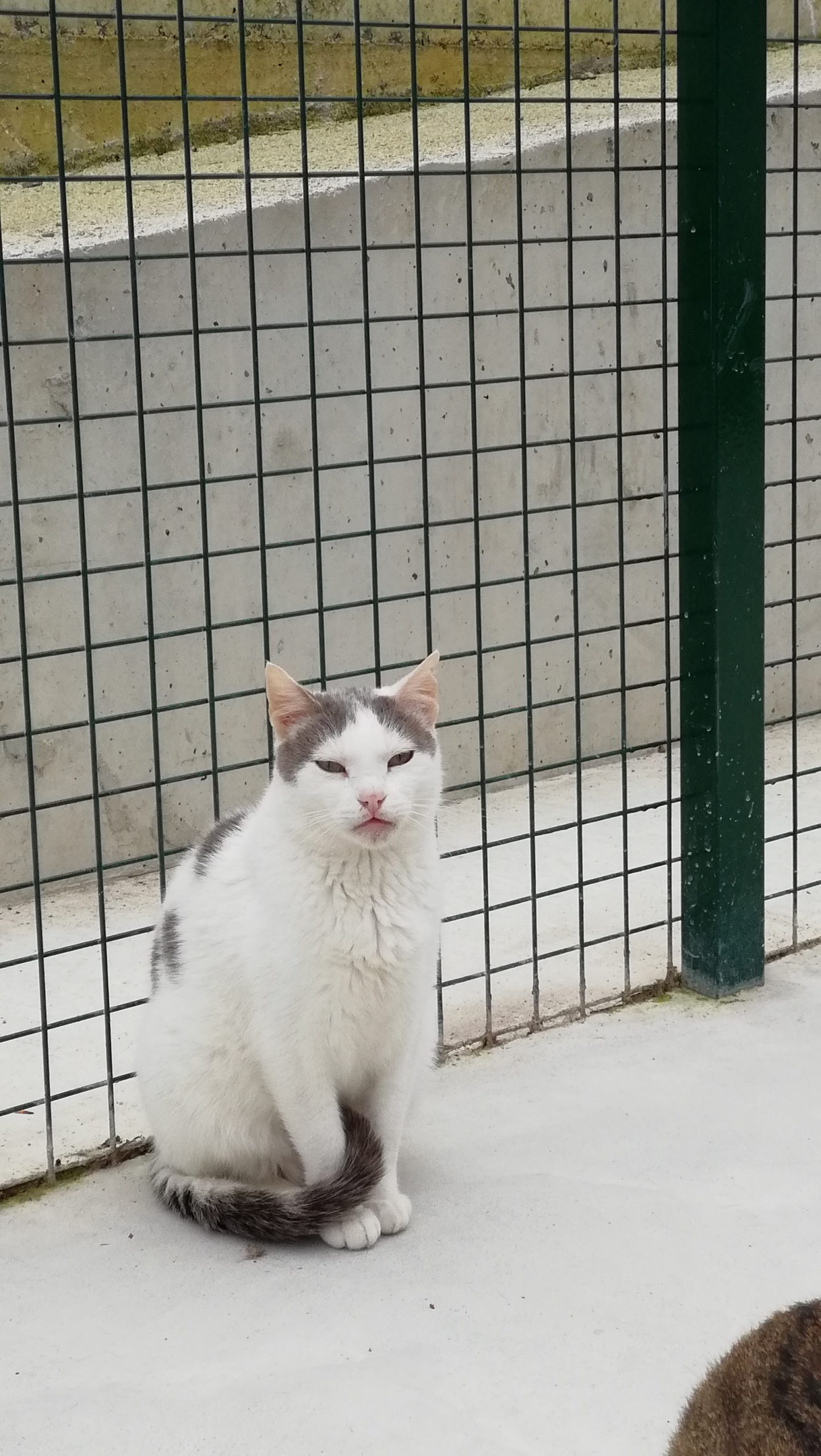 A pesar del tiempo, de las latitas, de las chuches, no hemos conseguido que confíe en nosotras , cada día Arraultza es mas desapegado y no muestra ningún interés en la gente. A parte de eso es un gato muy tranquilo, convive bien con el resto de gatos del recinto