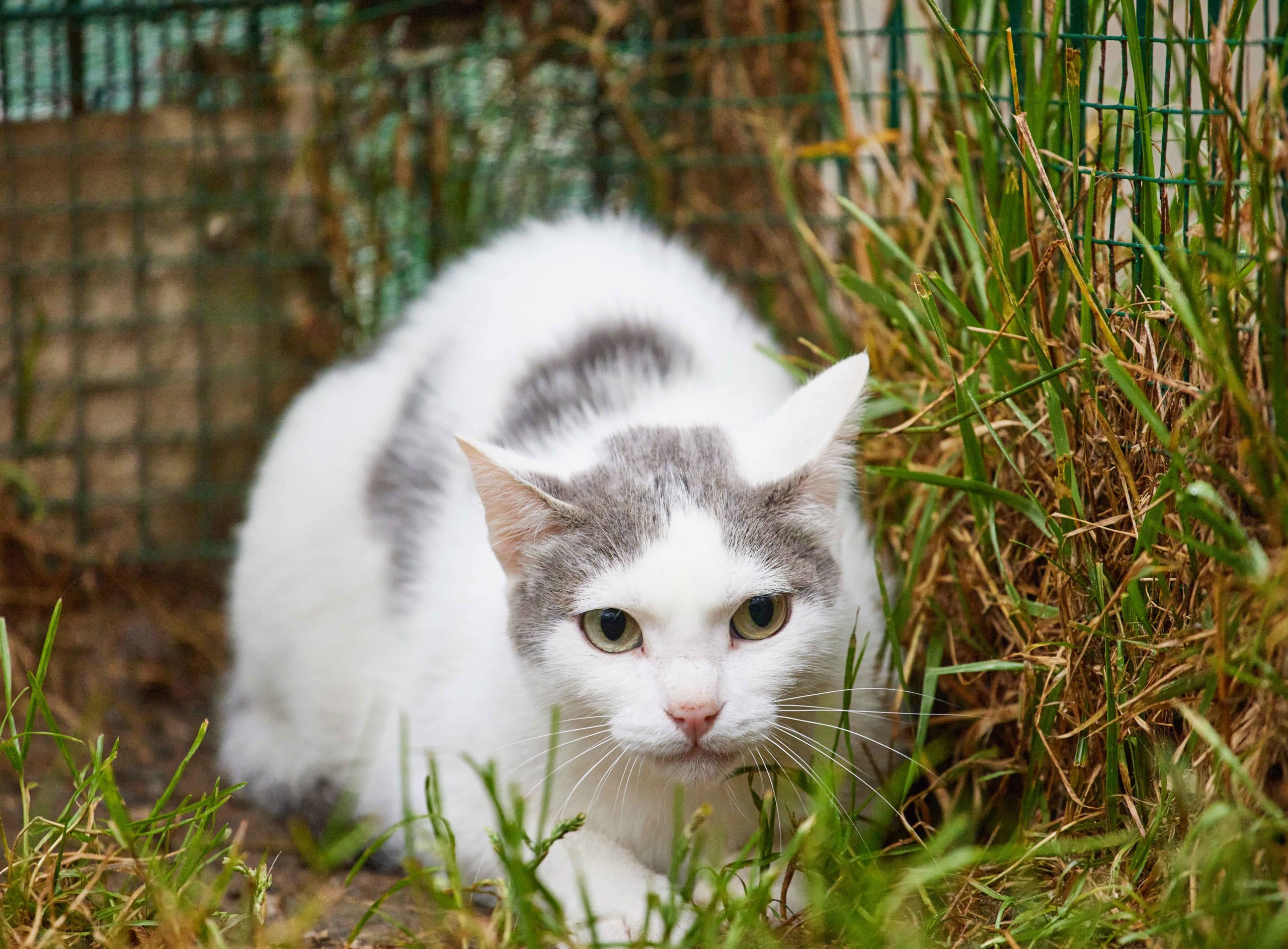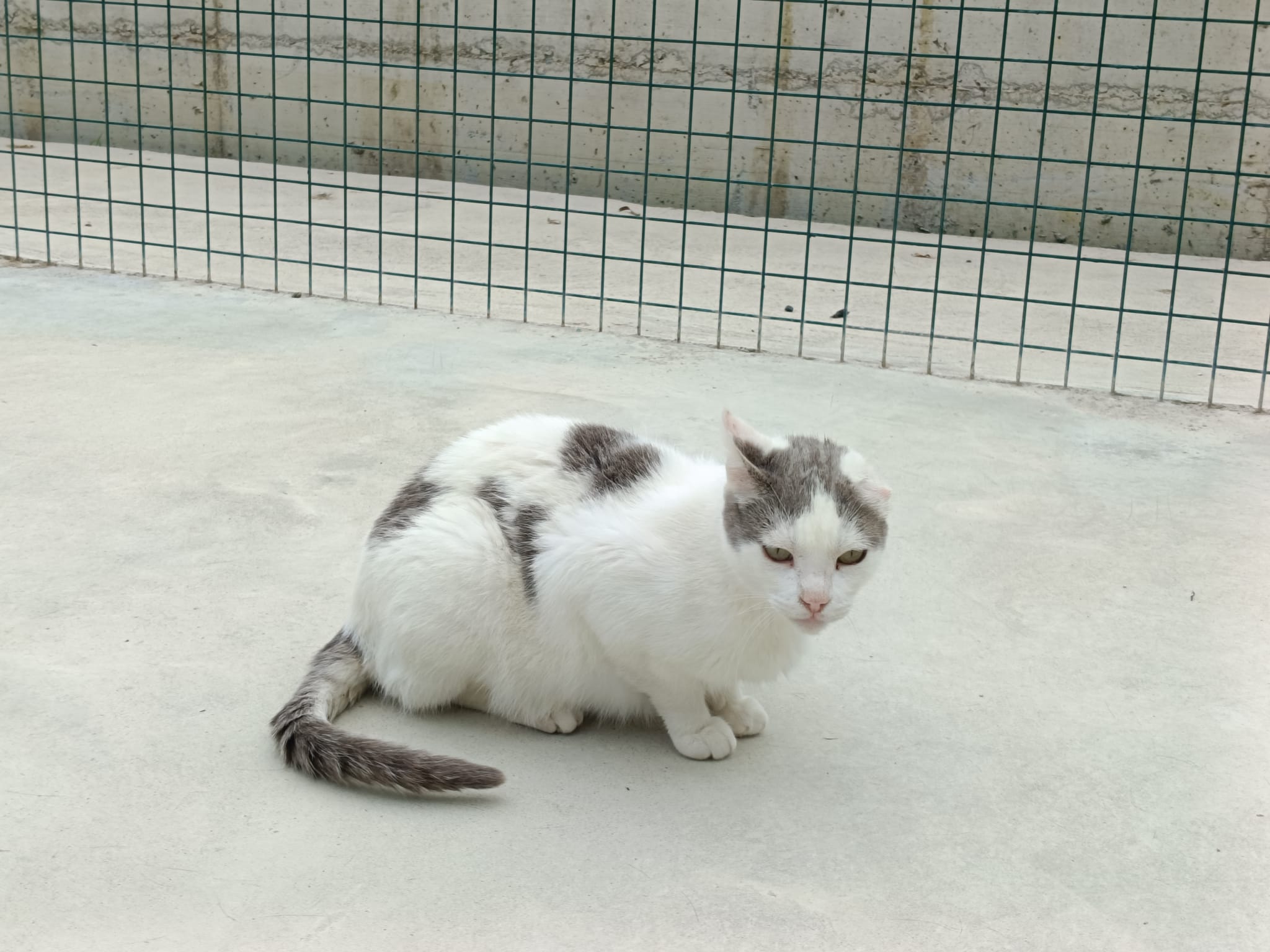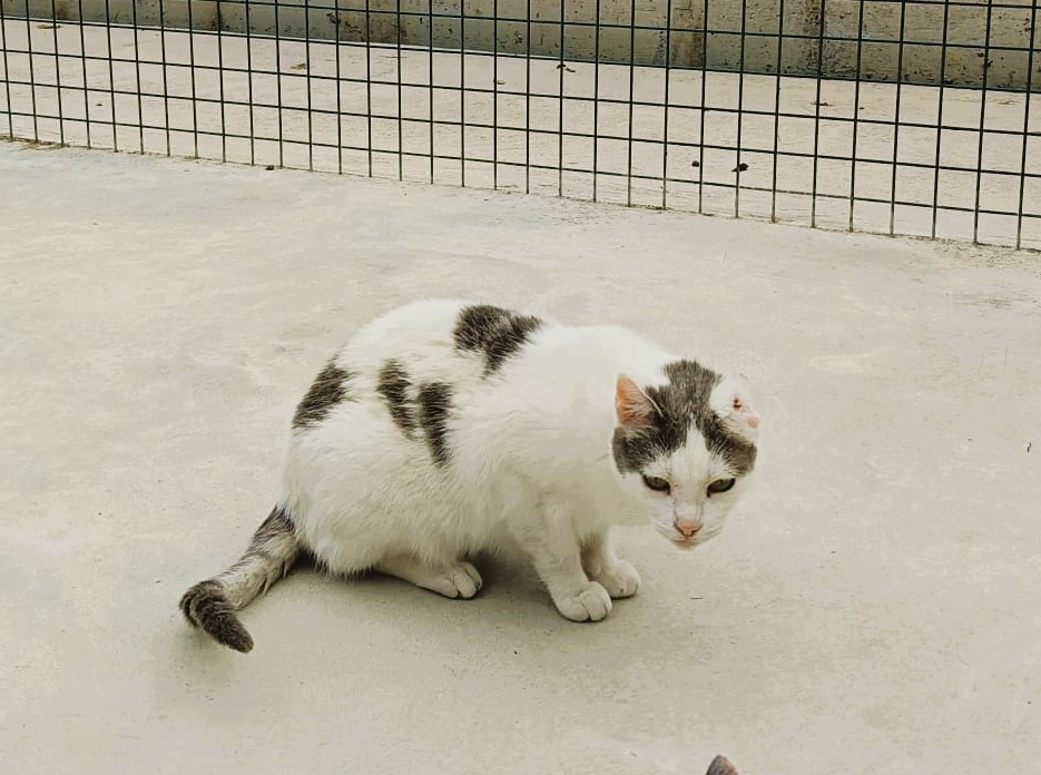 ARRAULTZA es un precioso gato de unos cinco años, blanco con manchas grises atigradas, y una en la cabeza tan particular que parece que lleva flequillo. Llegó al centro en mayo de 2021, procedente de una colonia felina, y desde entonces ha ido poco a poco acostumbrándose a la vida en un entorno más protegido, aunque sigue siendo un gato reservado.