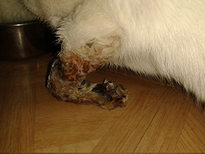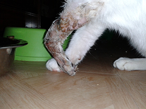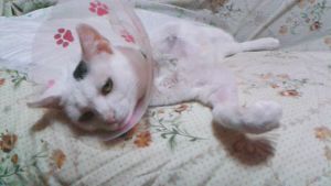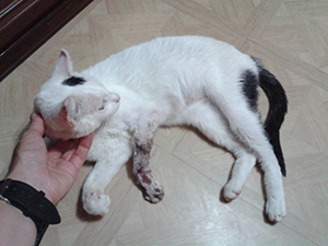 Arwen es una gata de 5 años que vivía en un casa con acceso al exterior. Después de 3 días desaparecida apareció con una pata inflamada y con signos de mordiscos, hasta tenía huevos de mosca, tras tratarla no ha mejorado por lo que ha sido llevada al veterinario de nuevo para valorar y nuestros peores temores se han cumplido tiene necrosis y hay que amputar… La operación será este mismo lunes.
