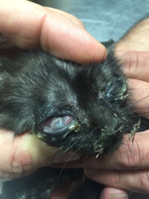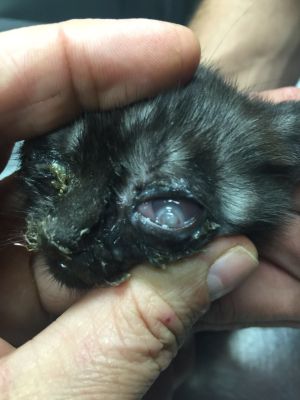 La pequeña Asia nos llegó el viernes con los ojitos en un estado tan terrible que ya nos ha dicho el vete que los ha perdido, que habrá que quitárselos   tiene úlceras graves en ambas córneas y no tienen solución