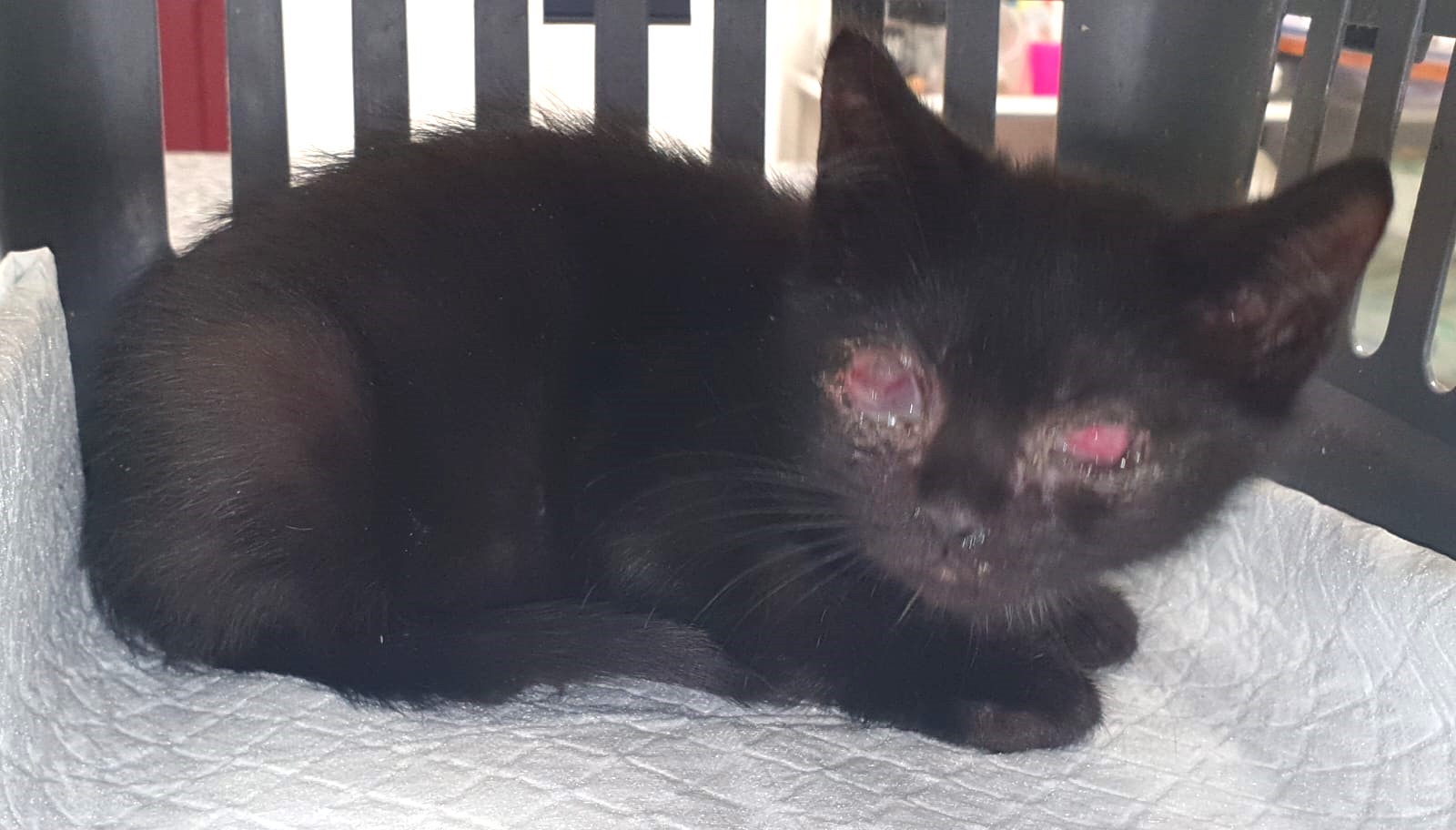 Azabache es un pequeño que ha llegado en unas condiciones deplorables. Tiene el ojo izquierdo perdido y el derecho ciego a la espera de si hay que retirar. Actualmente se encuentra ingresado y necesita padrinos de forma urgente. Si no puedes apadrinarle pero puedes hacer una aportación puntual, puedes utilizar uno de los siguientes medios: Transferencia a través de KutxabankES63 2095 0360 10 9111588575  o Caja Rural de NavarraES76 3008 0241 88 2397692928 , Paypal PayPal  o bien a través de nuestro bizum 03580.
