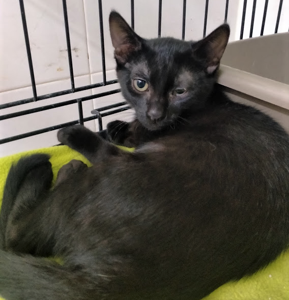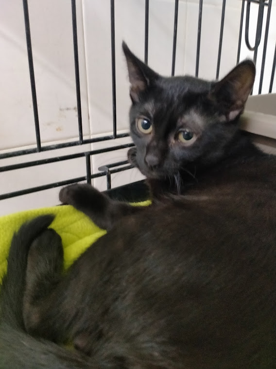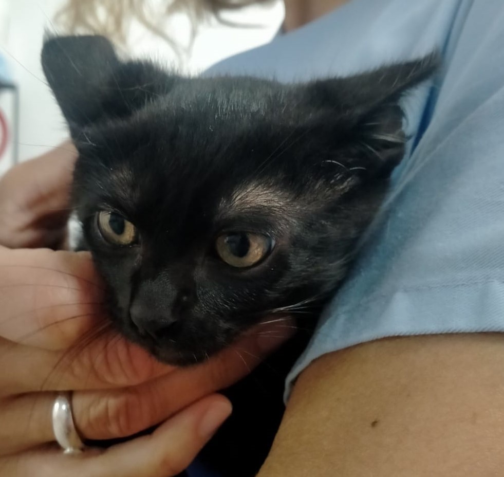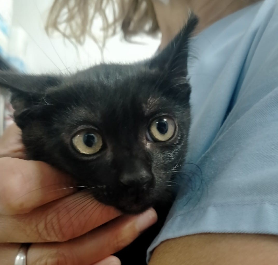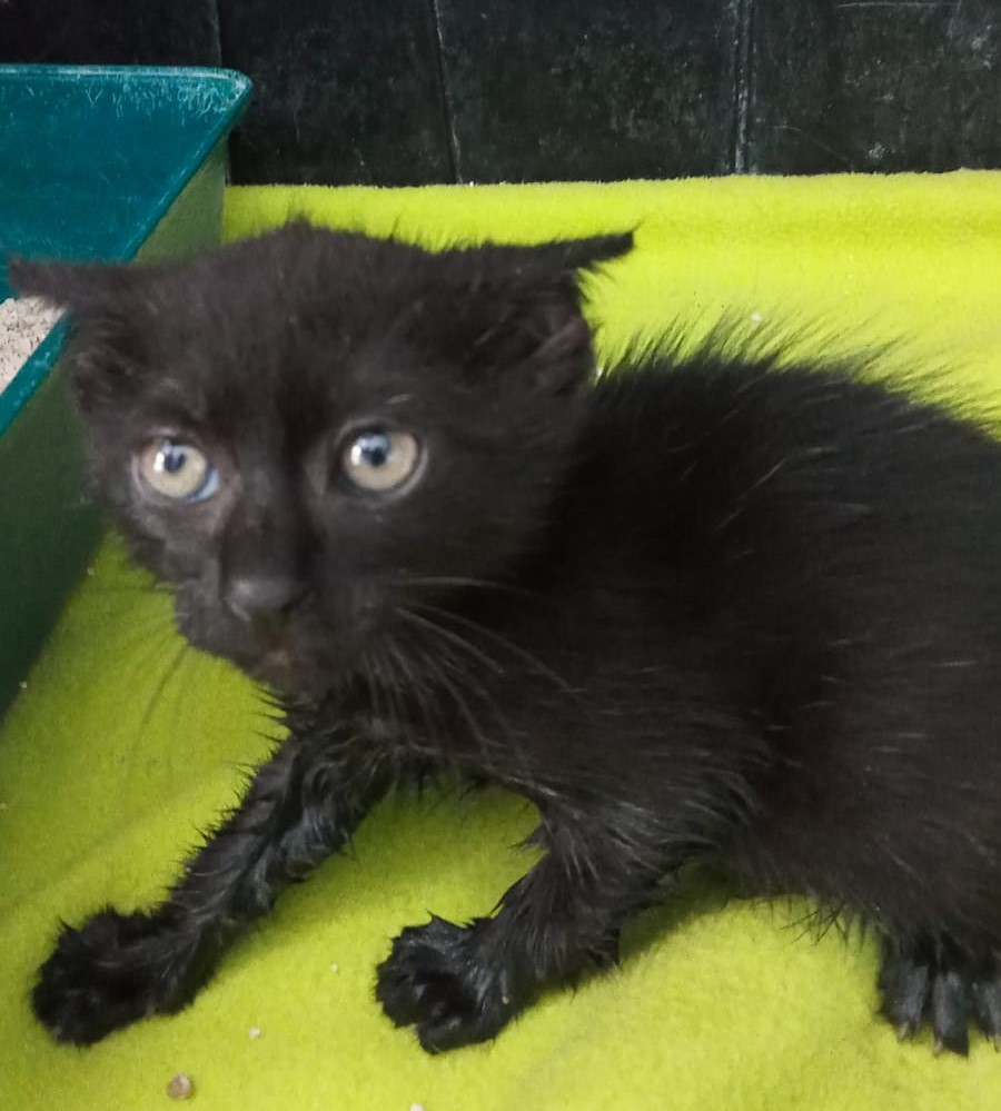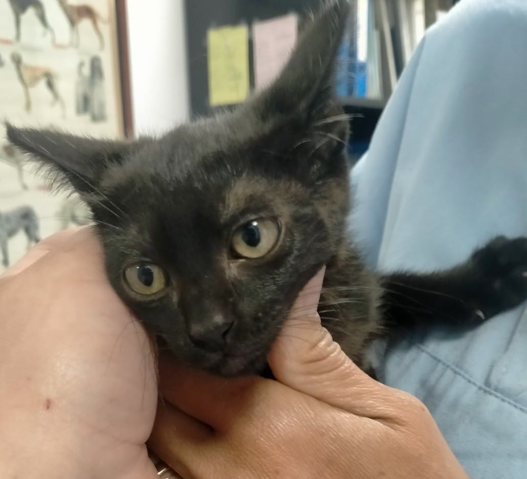 Hembra de unos dos meses que fue rescatada del motor de un coche y llevada a la perrera.