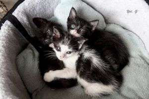 Estos bebés de unos 20 días de vida, aparecieron en un polígono sin su mami, llenos de pulgas… están siendo criados a biberón y de momento mejoran sanos, felices y calentitos. Son muy ronroneadores. Aún no están disponibles pero os los vamos presentando ya, por si tenéis un amor a primera vista. Esta es Bacall, la única nena y la que mas chilla para pedir bibe. Os dejamos un vídeo del primer día que llegaron.