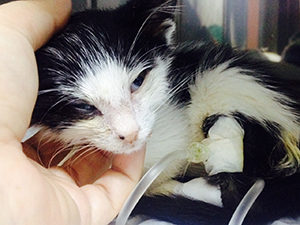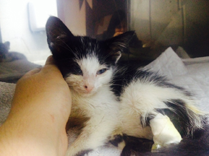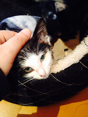 Cuando estuvo mejor volvió a casa y poco a poco va cogiendo peso. Se ha quedado en 400grs y su hermano pesa 1 kilo (para que os hagáis una idea), su casa de acogida nos dice lo siguiente;.