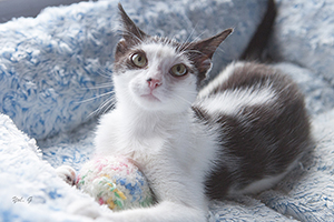 Newman y Borgart ya han sido felizmente adoptados, Bacall y Stewart siguen buscando una familia. Bacall es muy cariñosa, es gatita tranquila y también le gusta juguetear. Se ha convertido en un bellezón. Os dejamos un vídeo.
