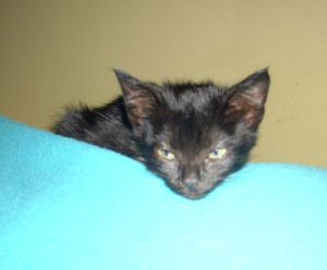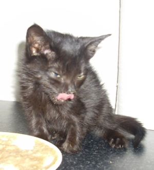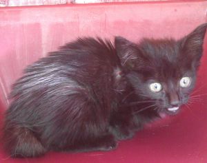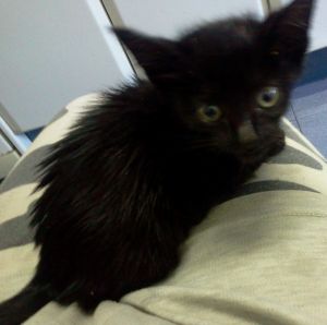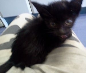 La pequeña Bagheera ha sido recogida solita en la calle con su escaso mes y medio y 350 gramitos de nada.