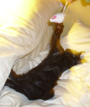 «Hace una vida normal solo que bajo vigilancia para que no se le enganche la patita en ningún sitio y por Toby, que lo mismo cree que es un juguete y le podría hacer daño. Si no podemos estar vigilando la metemos en el transportín para total seguridad. El vete dijo que la patita habrá que amputar pero más adelante, aún es muy chiquitina. No me lleve mucho disgusto porque ya lo habíamos comentado, además uno de los míos pasó por lo mismo y se apaña estupendamente.