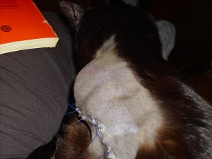 La nena está en casita recuperandose con todos sus enfermeritos pendientes de ella… la operación ha salido bien y a partir de ahora solo le queda recuperarse y vivir más cómoda sin un peso muerto que no le aportaba nada.