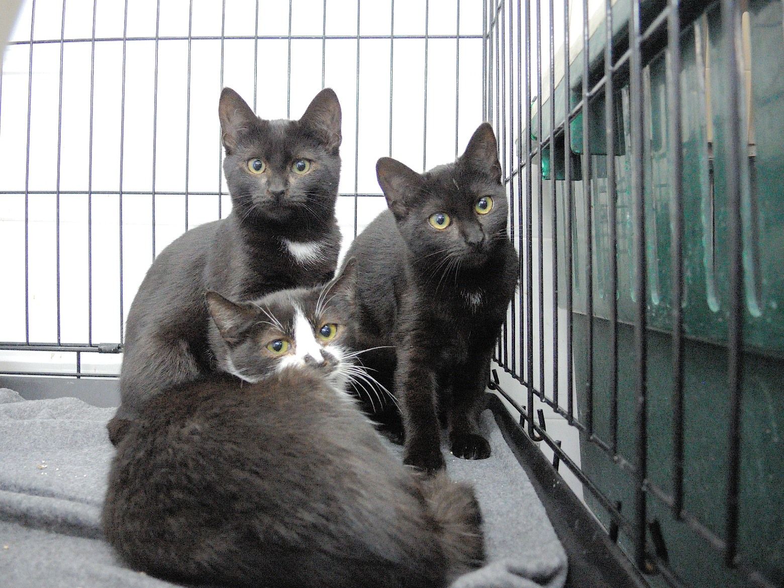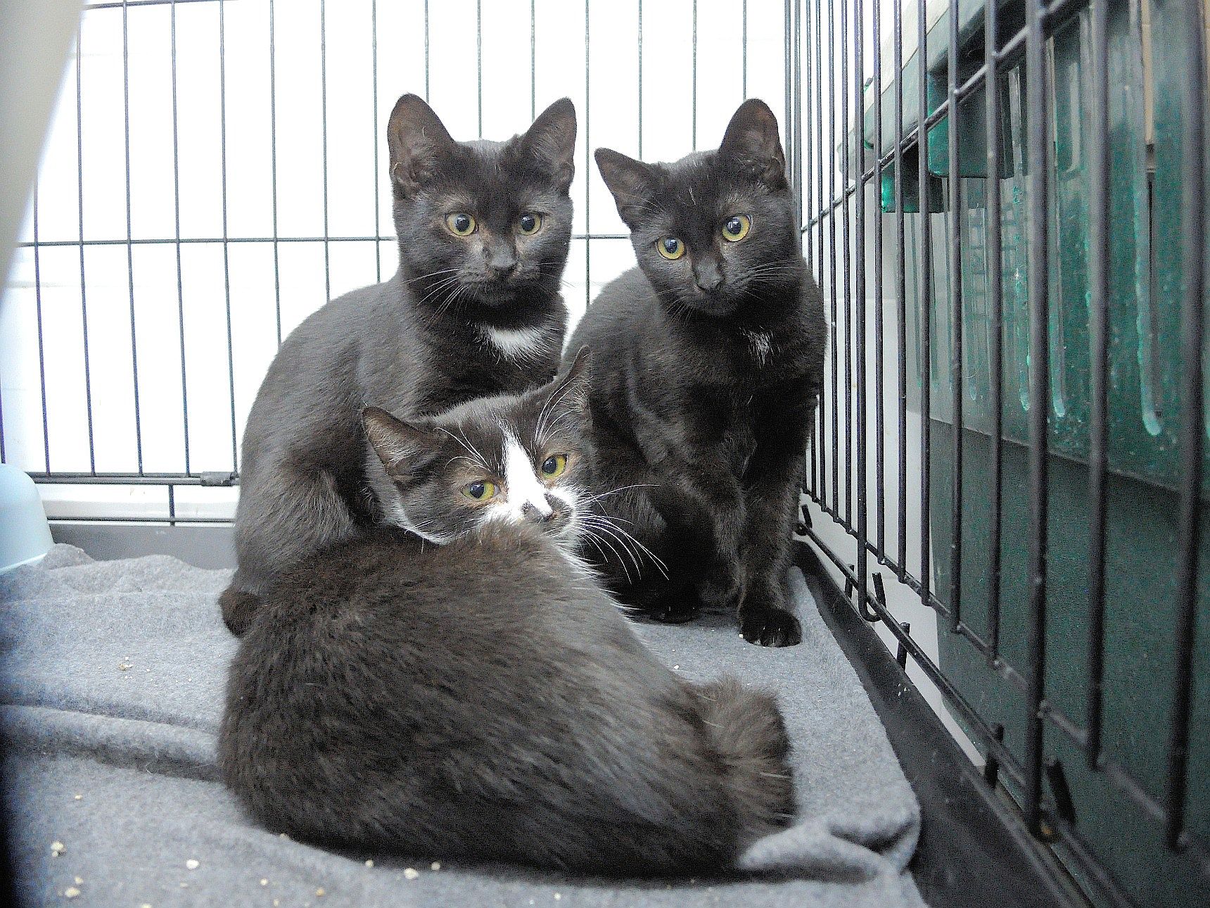 Vela, Bala, y Balina llegaban hace tres meses a la perrera. Tendrían aproximadamente dos meses, así que les calculamos unos 5. Lo hacían muy asustados y no tardaron en enfermar. La que peor estuvo fue Vela que llegamos incluso a temer por su vida, pero gracias a los cuidados veterinarios se han recuperado estupendamente. Las tres son muy tímidas y tienen muchisimo miedo, pero confiamos que en una casa con tiempo y paciencia acaben siendo adorables.Seria estupendo que o bien fueran juntas, o fueran a familias con mas gatos.