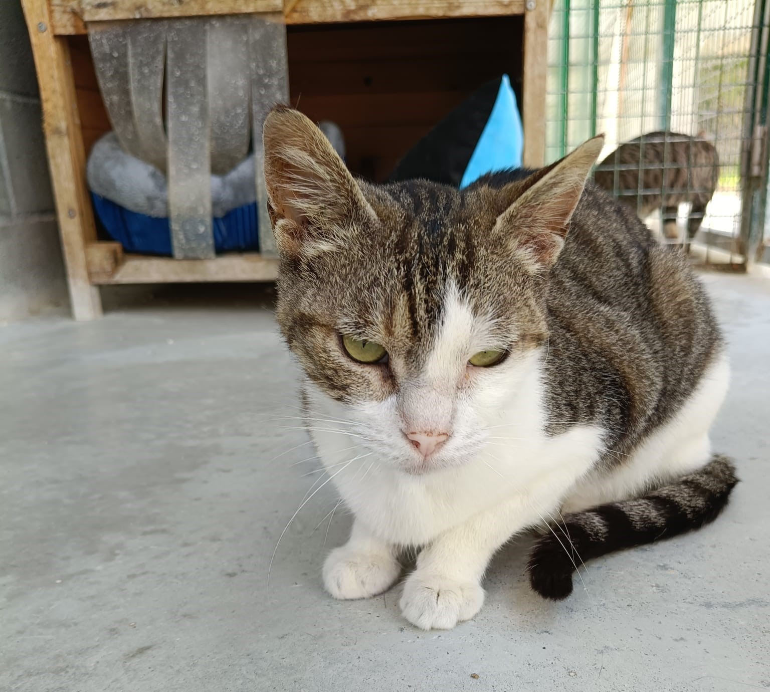 BAMBU es un alma tranquila, que ha encontrado refugio en la entrada del espacio que ahora habita. Es un gato discreto, sin conflictos ni brotes, que observa el mundo con calma. No se acerca mucho, pero no muestra signos de agresividad. Se mantiene sereno y respetuoso con los demás, lo que demuestra su buen carácter. Bambú necesita un hogar donde no lo presionen, donde pueda ser él mismo y seguir creciendo a su ritmo. Si buscas un gato equilibrado, que aporte paz y armonía a tu hogar, BAMBU puede ser ese compañero silencioso que te acompañe sin pedir demasiado.
