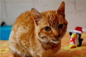 Barlovento es un gatito de unos 5-6 meses de edad. Es cariñoso y muy redondito, como se puede apreciar en las fotos (a pesar del enrejado y de la impericia de la fotógrafa).