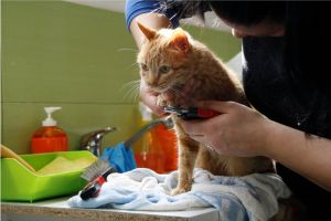 Lo del agua lo lleva mejor. Huele la comida pero nada….Tiene que dolerle un montón, aparte de lo mal que le huele la boquita.