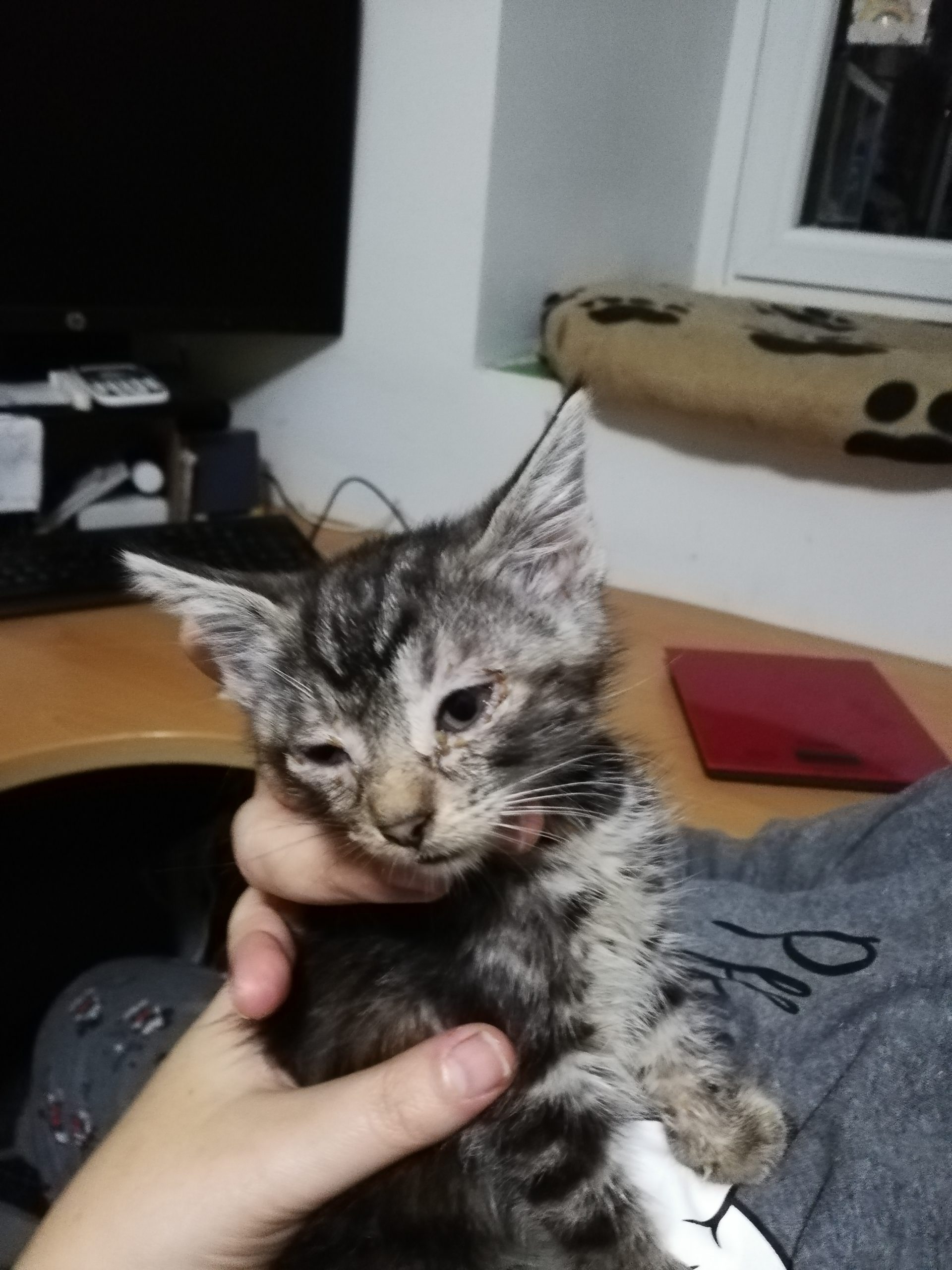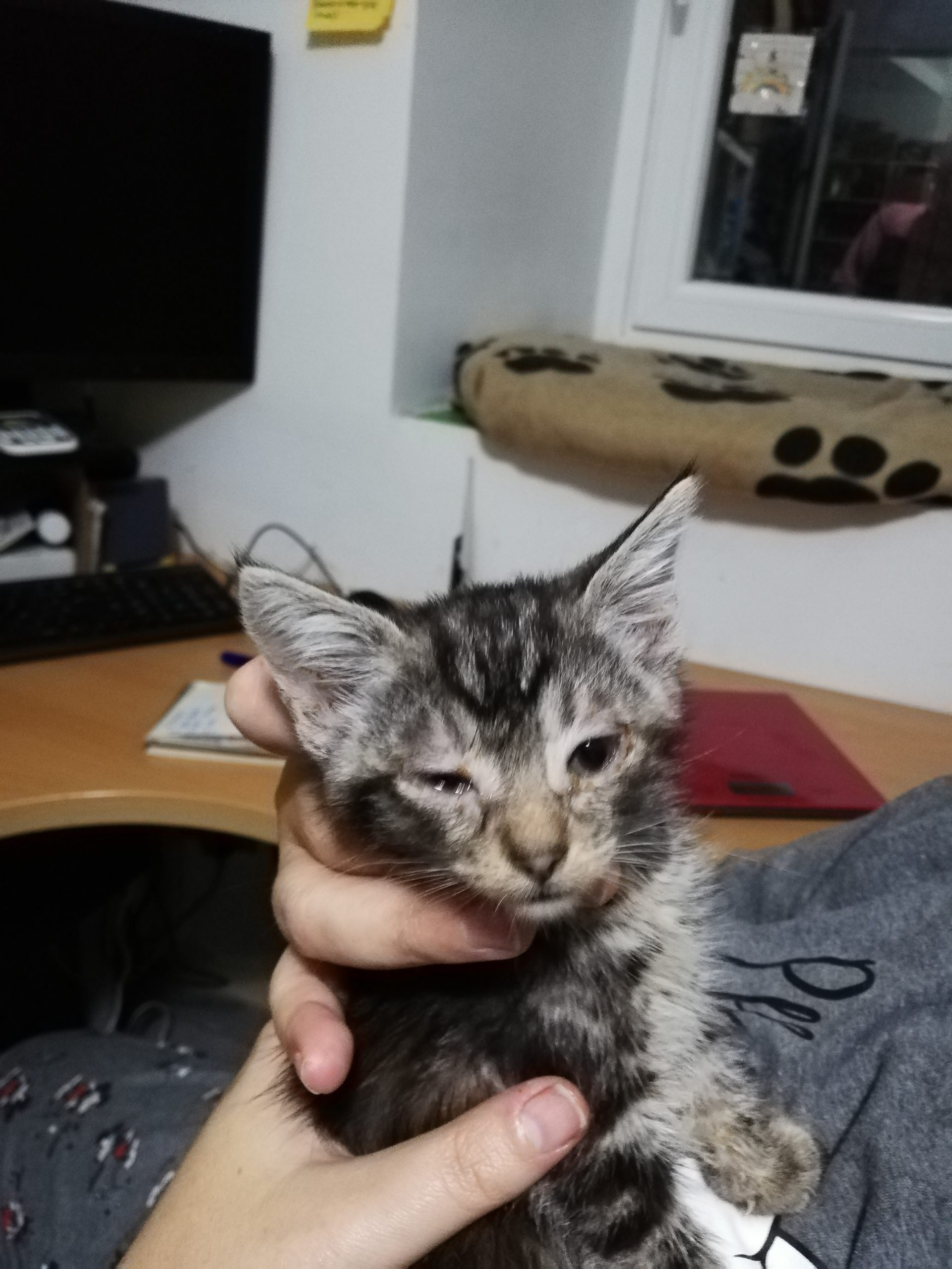 Los peques no han cogido demasiado peso así que como han cumplido los dos meses ya hemos separado a  Buda, Beki y Tinta que están en una casa de acogida y atendiendo los ojitos, La mami ya esta mas relajada con solo dos peques que alimentar 🙂 ¡¡Eran muchos para ella sola!!