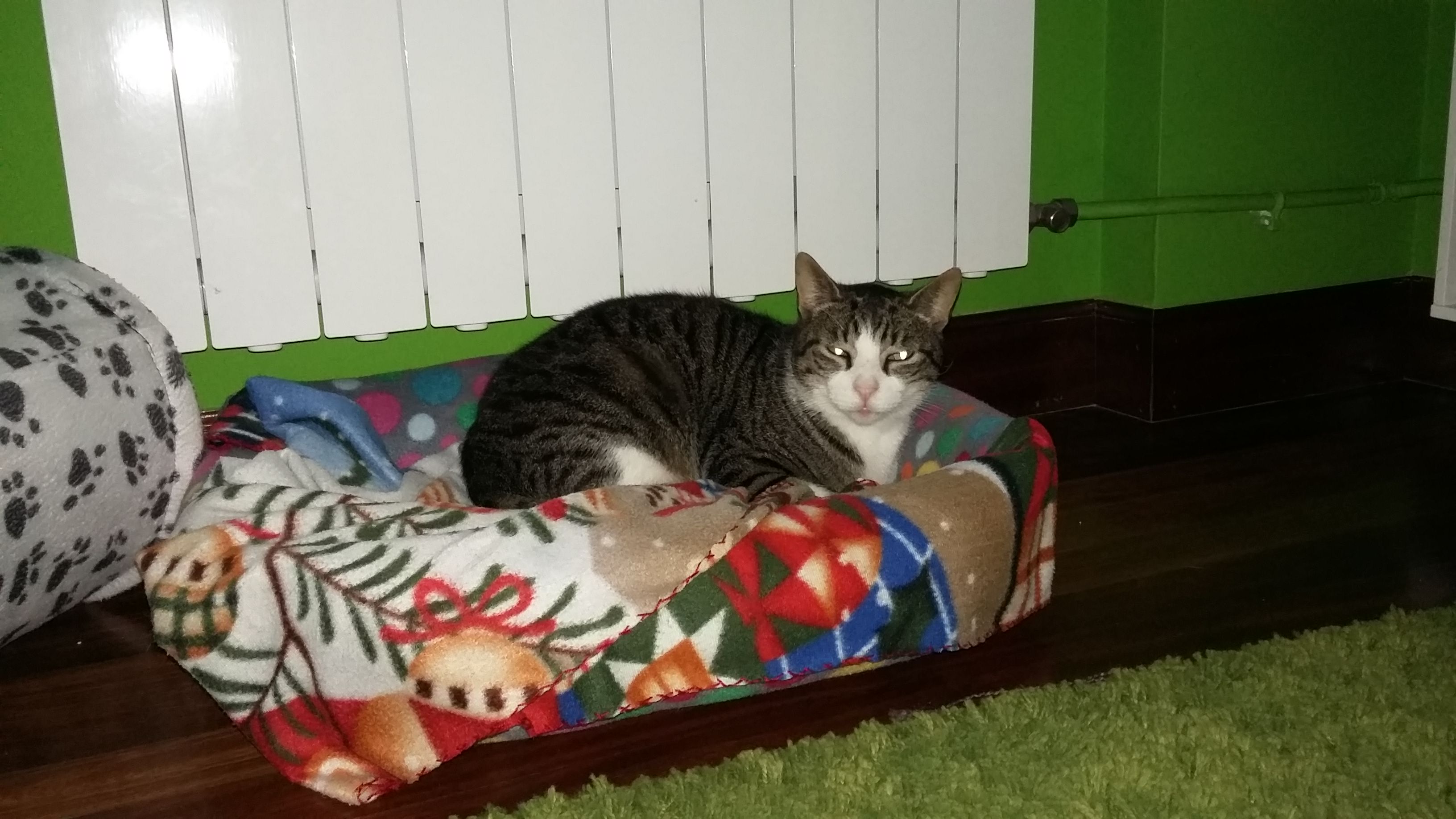 Bittor encontró una casa de acogida y lleva unos meses ya fuera de la perrera. En todo este tiempo se ha mostrado muy tímido con los humanos del hogar pero no ha mostrado ningún problema con otros gatos, ademas nos cuentan que es un gato juguetón. Su casa de acogida nos cuenta lo siguiente.