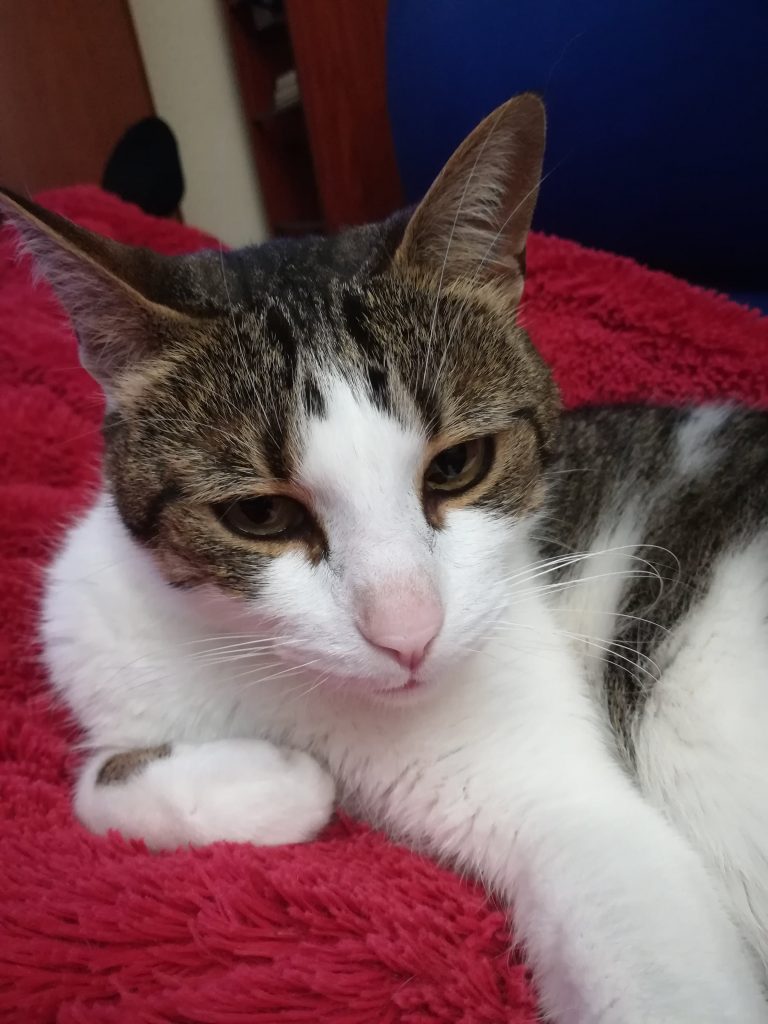 No podemos aventurar una edad pero sí creemos que es muy joven. Nos encanta la viveza de su mirada. Deseamos para Bombay un buen hogar para que no tenga que enfrentarse al estrés de vivir en una perrera. Los gatos que han vivido bajo la protección y cuidados de una familia suelen pasarlo mal cuando son abandonados.