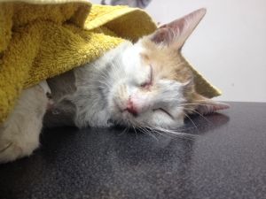 El pequeño Bosco nos llegó ayer en un estado lamentable aunque lo llevamos inmediatamente al veterinario y se ha hecho todo lo posible por él…su pequeño cuerpecito no ha podido aguantar más