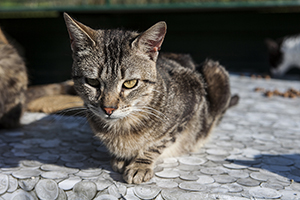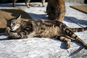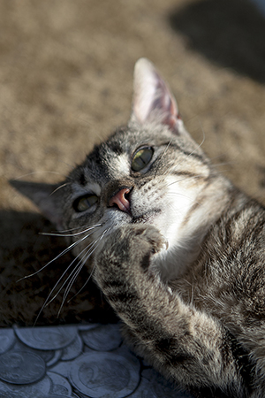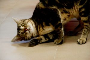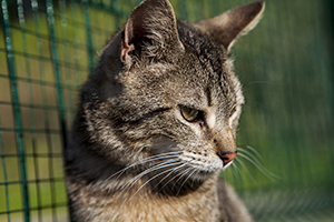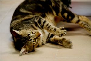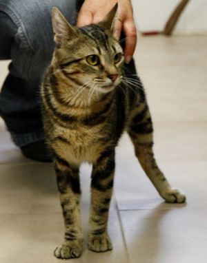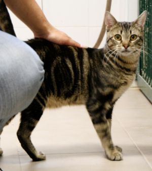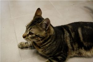 Por lo que mostraba la radiografía, cabe pensar que es un gato joven, puede que de menos de un año, pues los huesos aún están en crecimiento. En estos momentos está pendiente de verificar si existe una luxación de cadera (que en la radiografía, al estirar las patas, no parecía apreciarse). Lo cierto es que Bremen trata de ponerse de pie pero una de las patas traseras no le sostiene en condiciones.