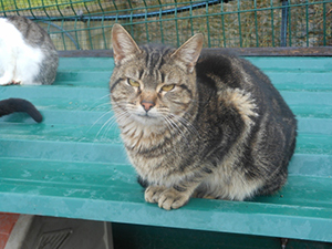 BREMEN fue atropellado por un coche la tarde-noche del 27 de julio pasado. La persona que lo vio dio aviso al servicio de recogida, que nos llamó a nosotros para llevar el gato a clínica. Parece que intentaba ponerse de pie y no podía.