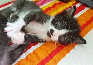 Aquí os explico un poquito acerca de los enanos que tengo acogidos desde hace un par de semanitas, muy intensas por cierto, pero muy entrañables también. Llegaron con alrededor de 15 días y pesaban menos de 180 gramos y ahora ya van camino de los 400 los gordinflos! La bicolor – Brisa – es hembra y el negrito – Txoko -, macho y a pesar de algún agobio con el tema de hacer sus necesidades (buff, cuánto me está costando con la señorita…), la verdad es que es una gozada verles crecer y jugar cada día!