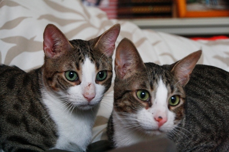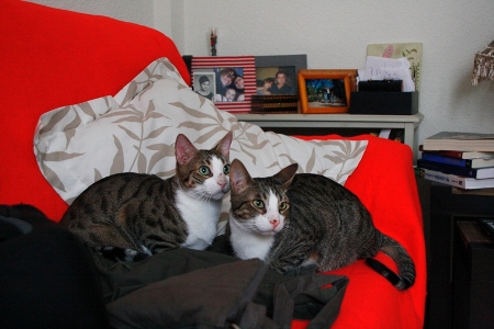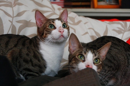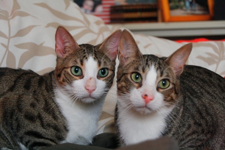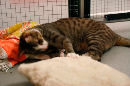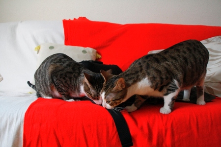 Al principio eran muy tímidos y asustadizos, pero poco a poco se dejan acariciar y ya hasta ronronean.