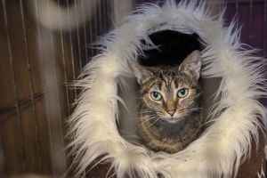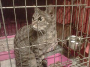 Es una gatita muy muy buena y cariñosa… pero que no se hace a estar en una jaula, necesita cariño, atenciones… ahora mismo está apática, dejando pasar el tiempo sin ánimo para nada… ni para comer.