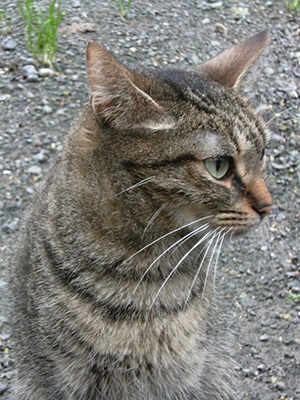 BRUNILDA es una gata aparentemente joven que fue sacada de la calle. Aún no es del todo confiada con la gente, a veces te pega con la pata al querer acariciarla, pero ya te recibe en la puerta del recinto y te sigue para que le pongas comida, mirándote con sus enormes ojos verdes. Enseguida se adaptó a sus nuevos compañeros y parece gozar de buena salud.