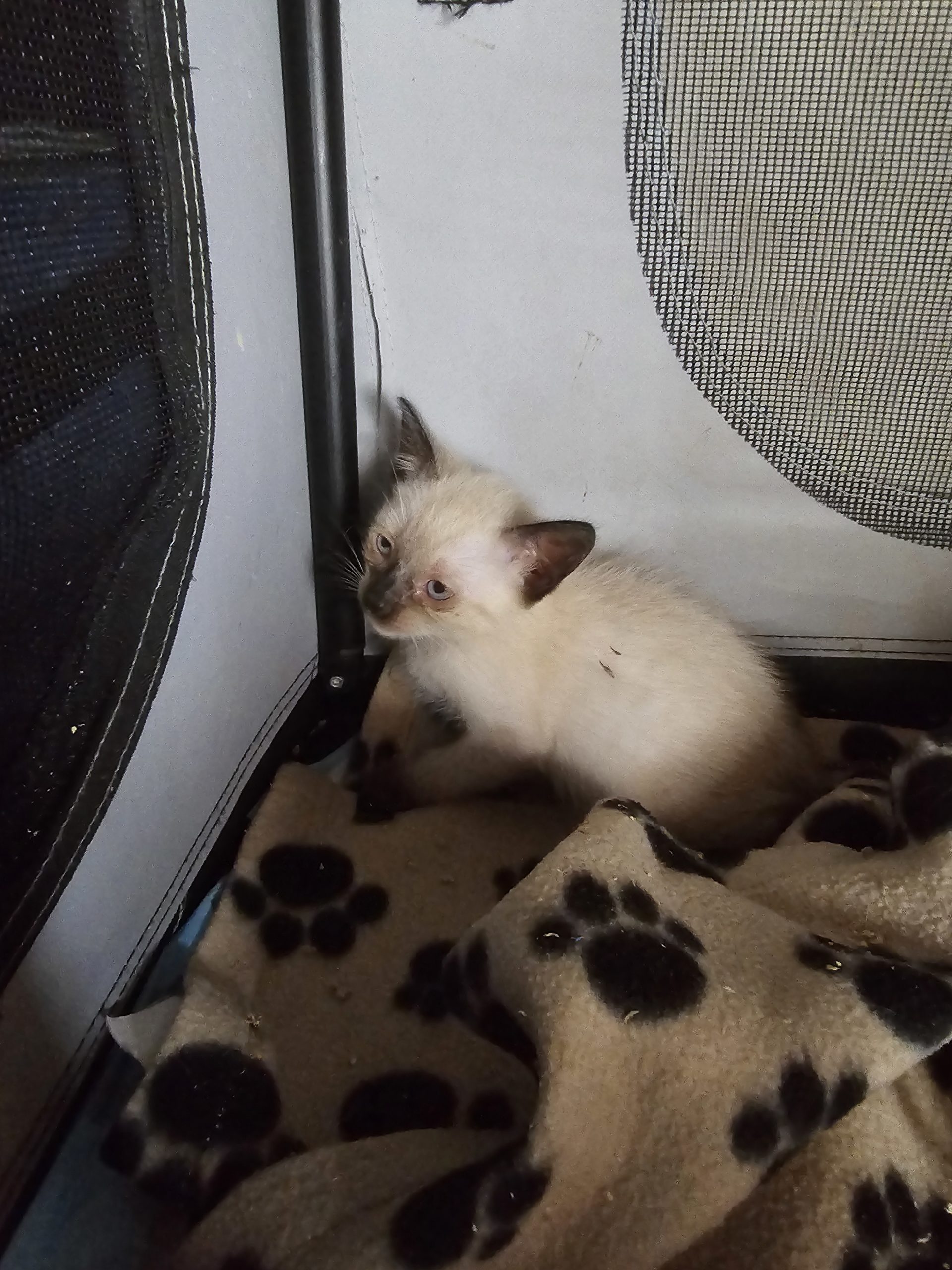 Buffy es más pequeña que xilou, también es más tímida y menos osada que , intenta imitar a su hermana en los juegos aunque con menos garbo. Suele protestar cuando la coges pero se queda a gusto si la sostienes con una mantita, supongo que se sentirá protegida así