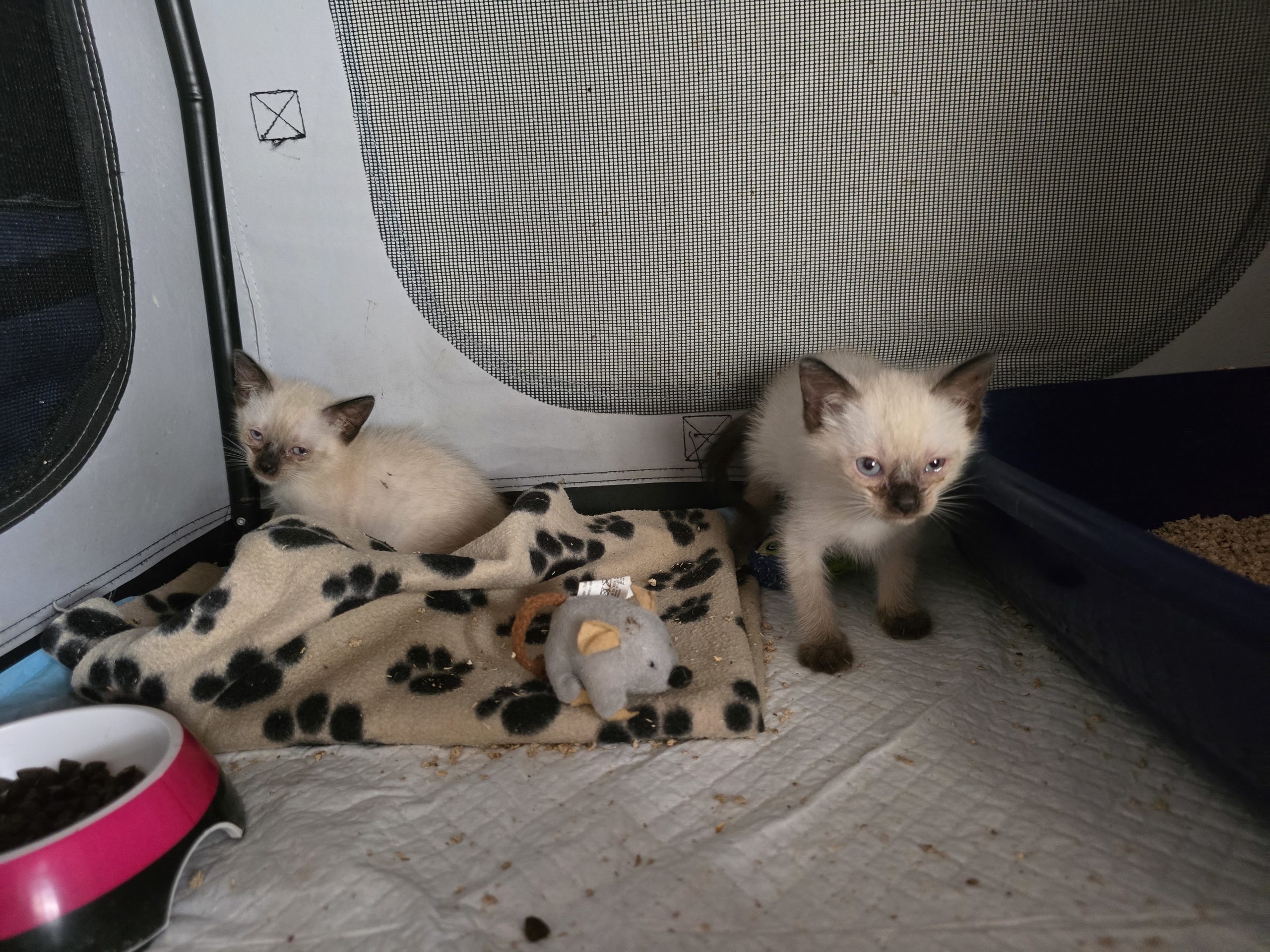 xilou es la activa de las dos, juega mucho y es atrevida. Cuando la coges ronronea y también es quien más reclama atención maullando.