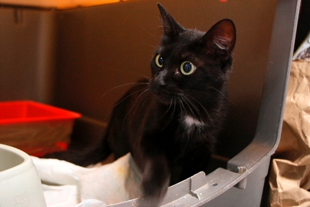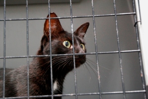 Es muy cariñosa, ya se le ha quitado la cara de miedo de los primeros días… pobre… está esperando a que alguien se enamore ¡¡¡de esos ojazos verdes!!!