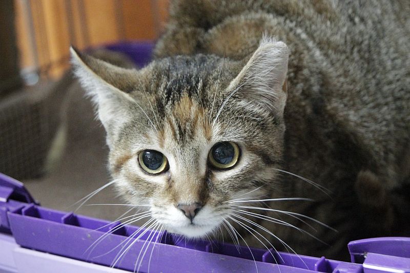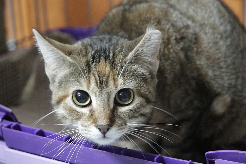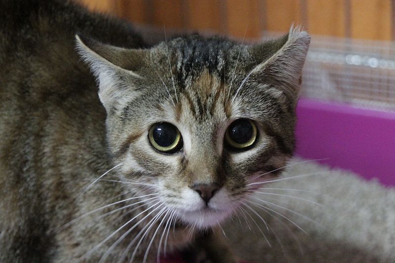 Caeli es una de esas pocas gatas que llegan siendo bebes y no somos capaces de sociabilizar. Está pendiente de esterilizar y pasar al jaulón; a ver si conseguimos que allí en compañía de otros gatos se relaje un poco. Queremos que pueda encontrar un hogar y hoy por hoy necesitaría una persona que ya tenga experiencia con gatos, lo que reduce sus posibilidades.