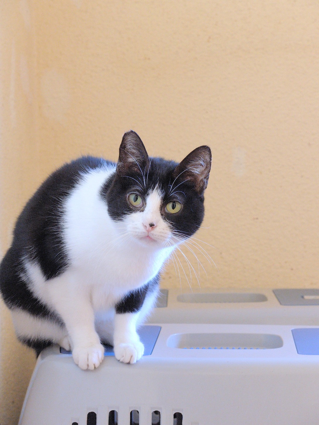 Camila es esta preciosa gatita recogida en la calle y llevada a la perrera…lo ha llevado bastante mal los primeros días como podéis ver las fotos pero cuando ya ha salido al recinto exterior, se ha tranquilizado y convive perfectamente con otros compañeros.