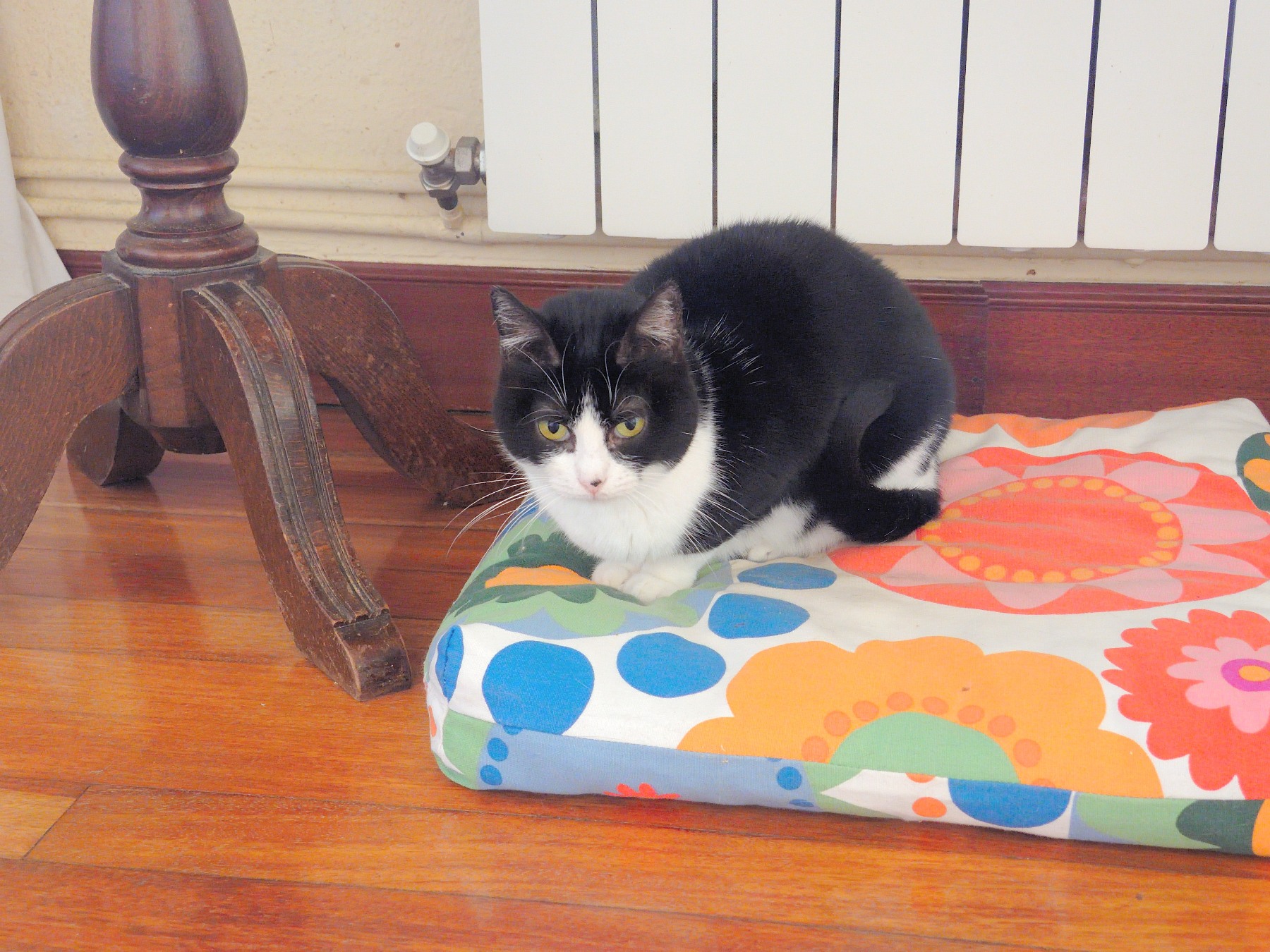 Es una gata cariñosa conmigo pero a la que le cuesta asimilar los cambios. En el veterinario, sin embargo, es muy manejable. Convive con Marla y Grisito, y aunque no parece especialmente unida a ninguno de ellos en varias ocasiones les he visto durmiendo juntos a los tres.