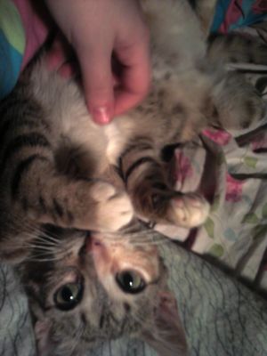 Canela sigue igual de mimosa ¡¡o más!! Es muy movida pero solo busca mimos, en cuanto te ve la mano por el aire, ya va ella a poner la cabeza debajo. Es un amor de gatita.