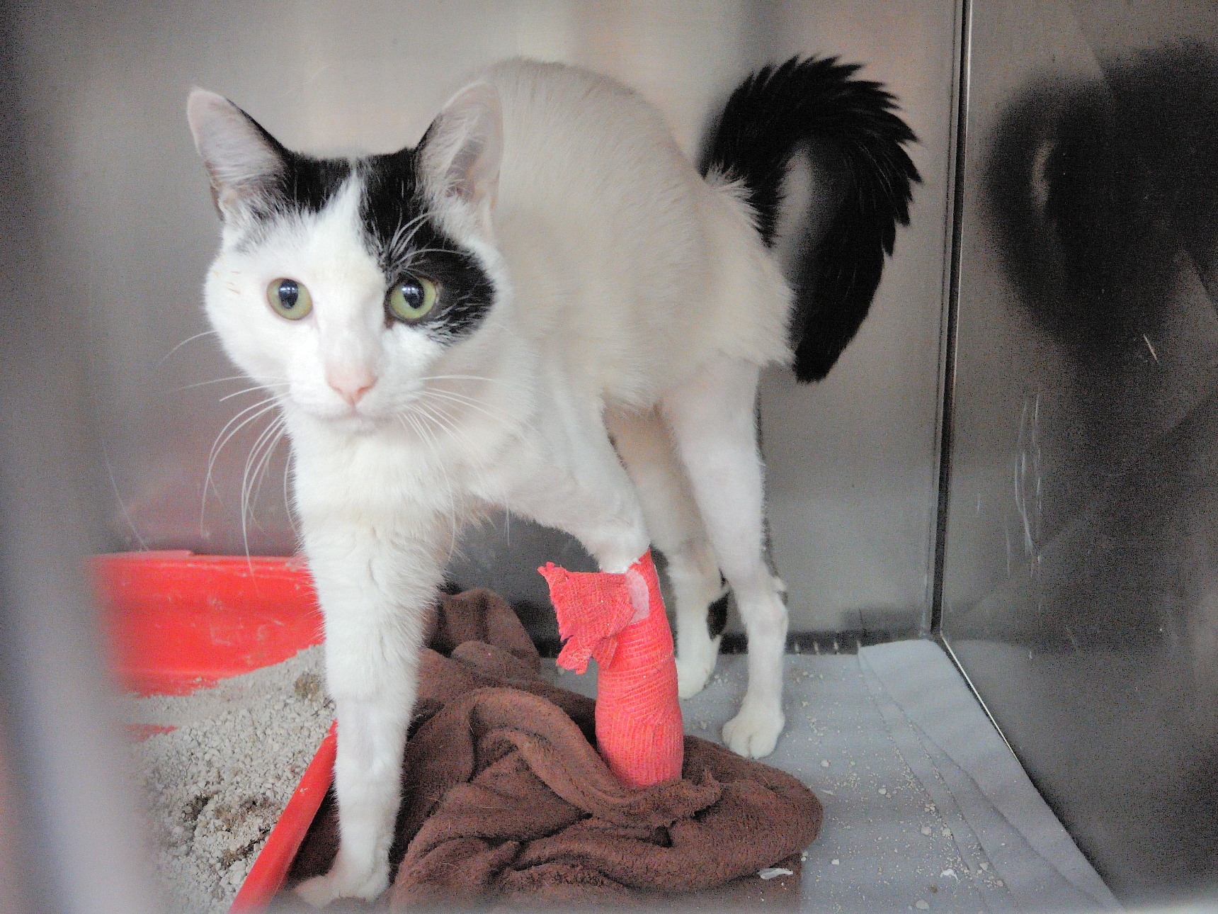 CAPOCHO es un gato jovenzuelo que fue dejado en una clínica veterinaria por unas alimentadoras. El pobrecito está hecho un trapo, multiples facturas y varias placas y tornillos. Tiene que ir de nuevo a revisión en breve. Es bueno y cariñoso pero de momento tiene que estar en reposo absoluto.